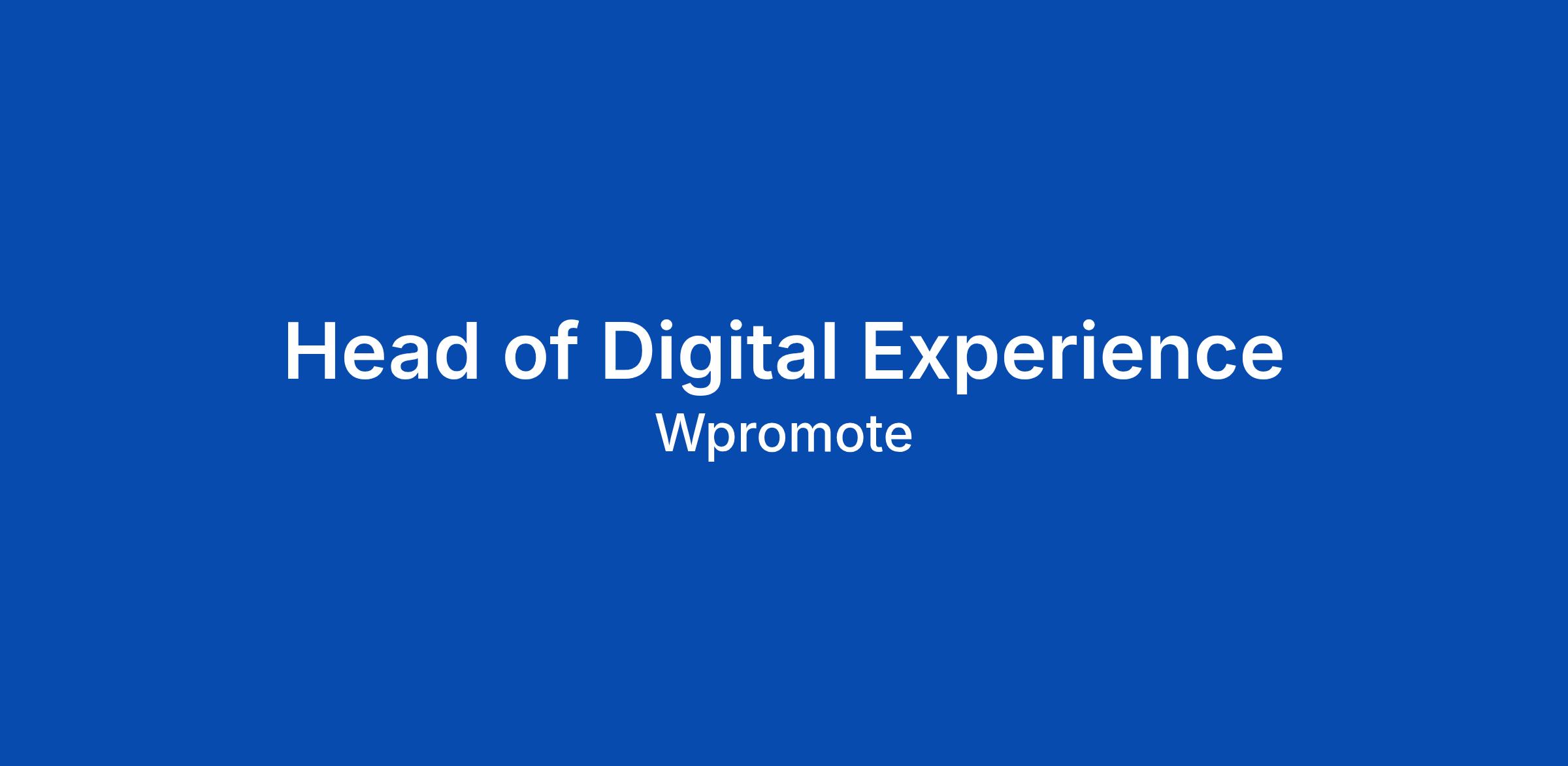 Wpromote is targeting Β a forward-thinking Head of Digital Experience to lead and scale our website, CRO, and technical account management capabilities. This role sits at the intersection of engineering, performance, and customer experience, overseeing the team responsible for designing, building, optimizing, and maintaining high-performing digital experiences for our clients.