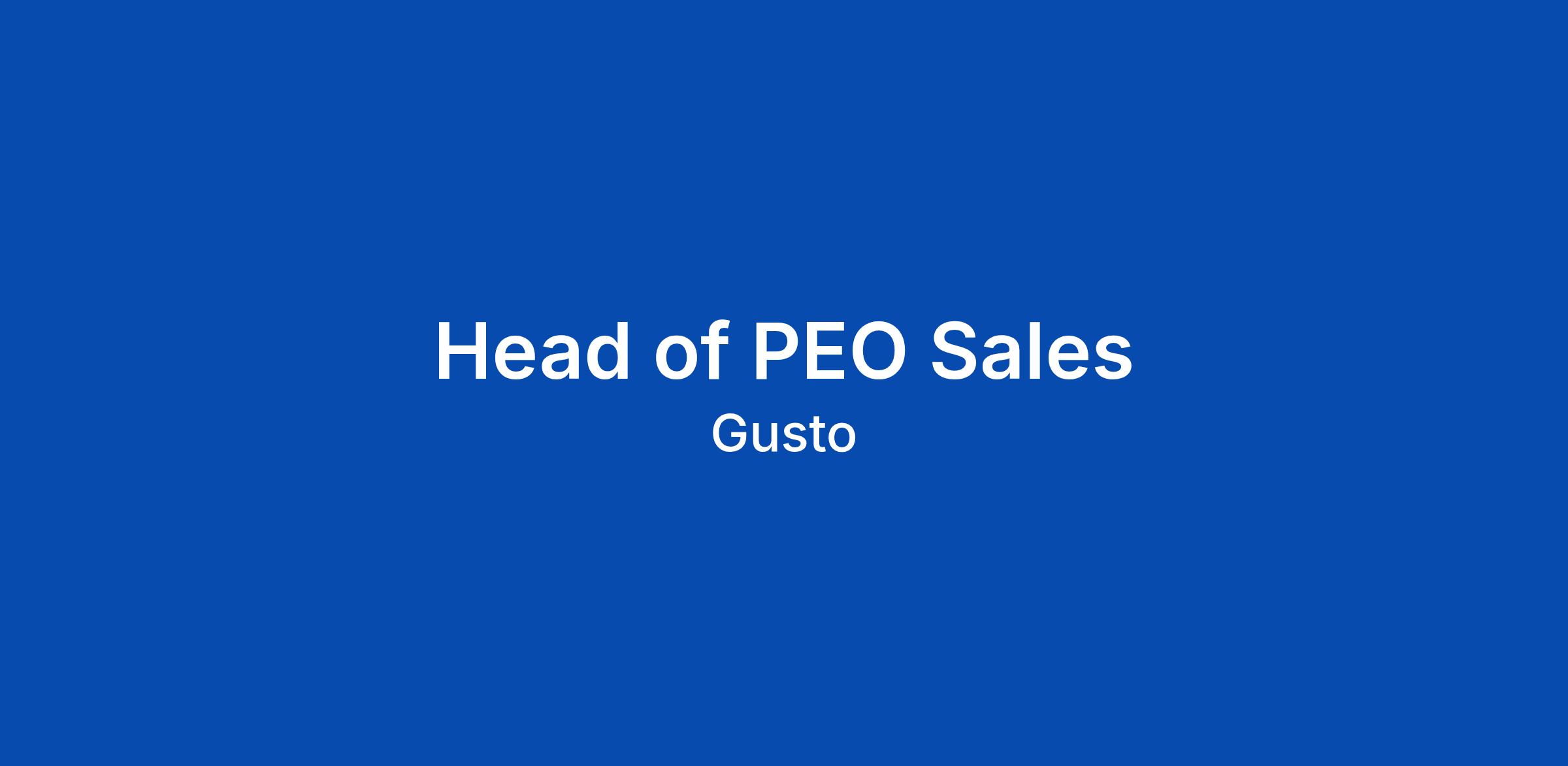 You will drive new PEO revenue by selling Gusto's co-employment solution to both prospects and our existing base of 400,000+ customers — Gusto's single biggest competitive advantage over legacy PEOs. The pace is fast, the market opportunity is real, and we're looking for someone who will bring experience, creativity, and a genuine passion for building to the table every single day. You align with our company values and have a knack for building for the long haul. If you're excited to roll up your sleeves, lead by example, and architect something from scratch, let's talk.