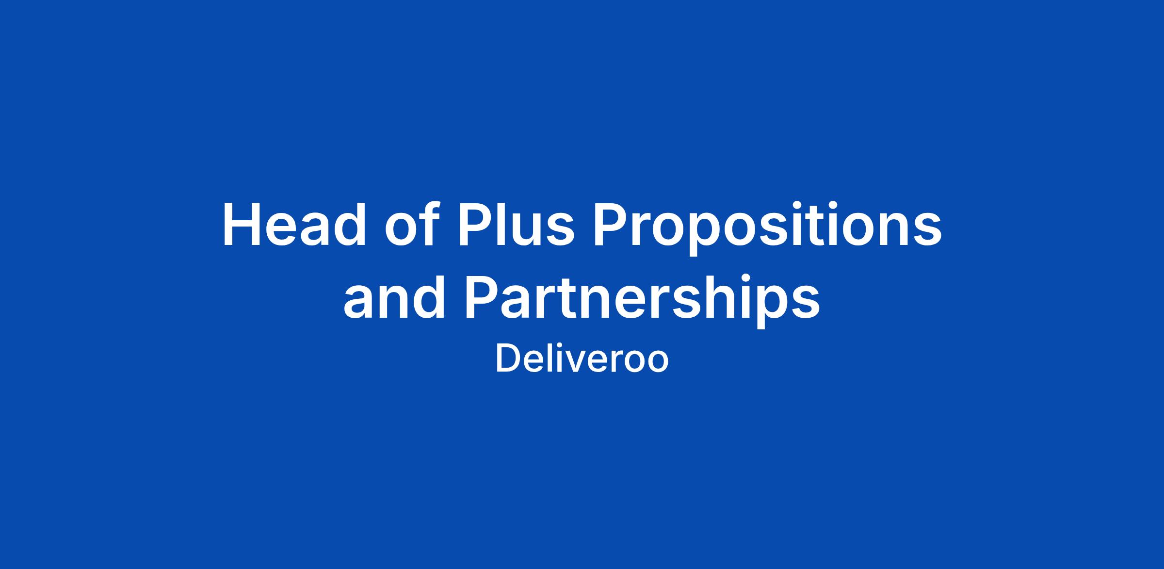 Job Description - Head of Plus Propositions & Partnerships We are looking for a passionate Head of Loyalty Propositions to help shape Deliveroo’s consumer loyalty strategy globally. A key company mission is to become a Plus-first business and this role will be central to ensuring the success of this objective. You’ll be responsible for defining and delivering new initiatives that drive long-term customer value and determining how to engage, grow and retain our most valued customers so that Deliveroo is always their go to brand. It’s a fast paced, data driven and highly cross functional business, so you’ll need to be creative in your approach, commercially savvy and highly collaborative. What you’ll be doing - Proposition development: Responsible for designing the right loyalty proposition for each global market; which includes understanding the consumer needs in each market, how well our existing loyalty propositions are serving them today, what competitors are offering, and how we should evolve our proposition which balances growing the programme with our short and long term financial objectives. Ownership of our newest Plus Diamond tier, launched in 2024, including performance tr