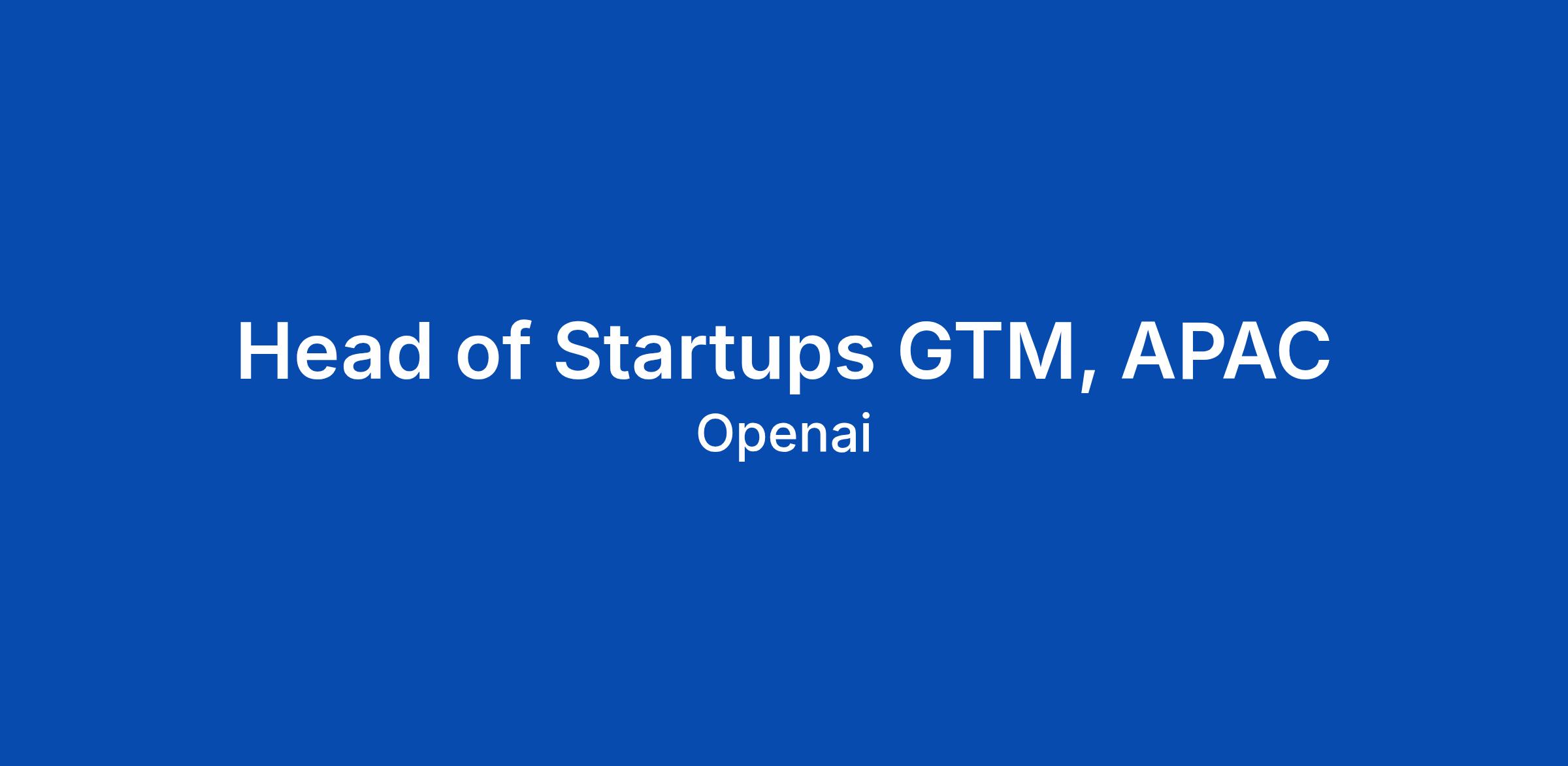 Head of Startups GTM, APAC
