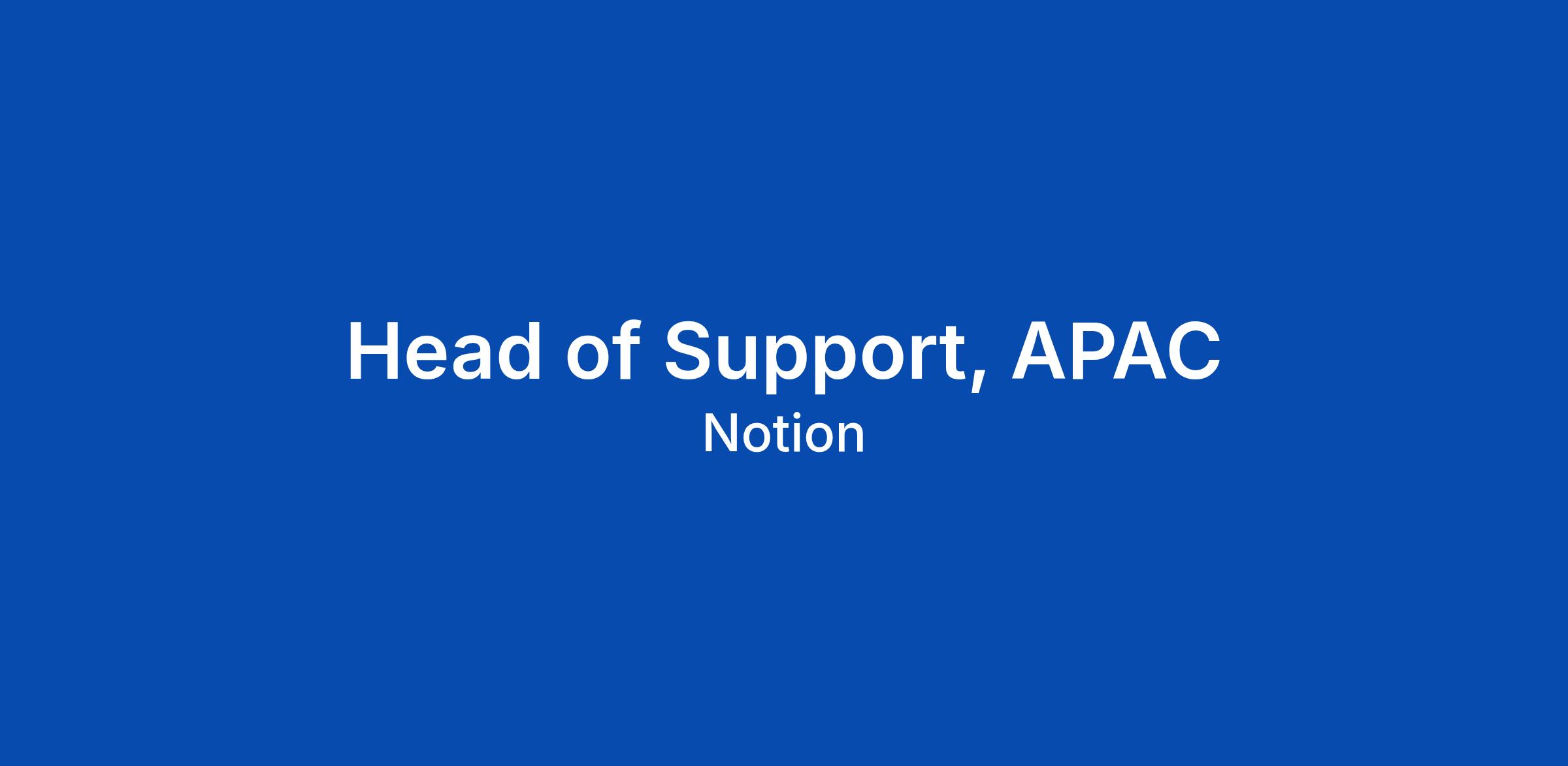 Head of Support, APAC