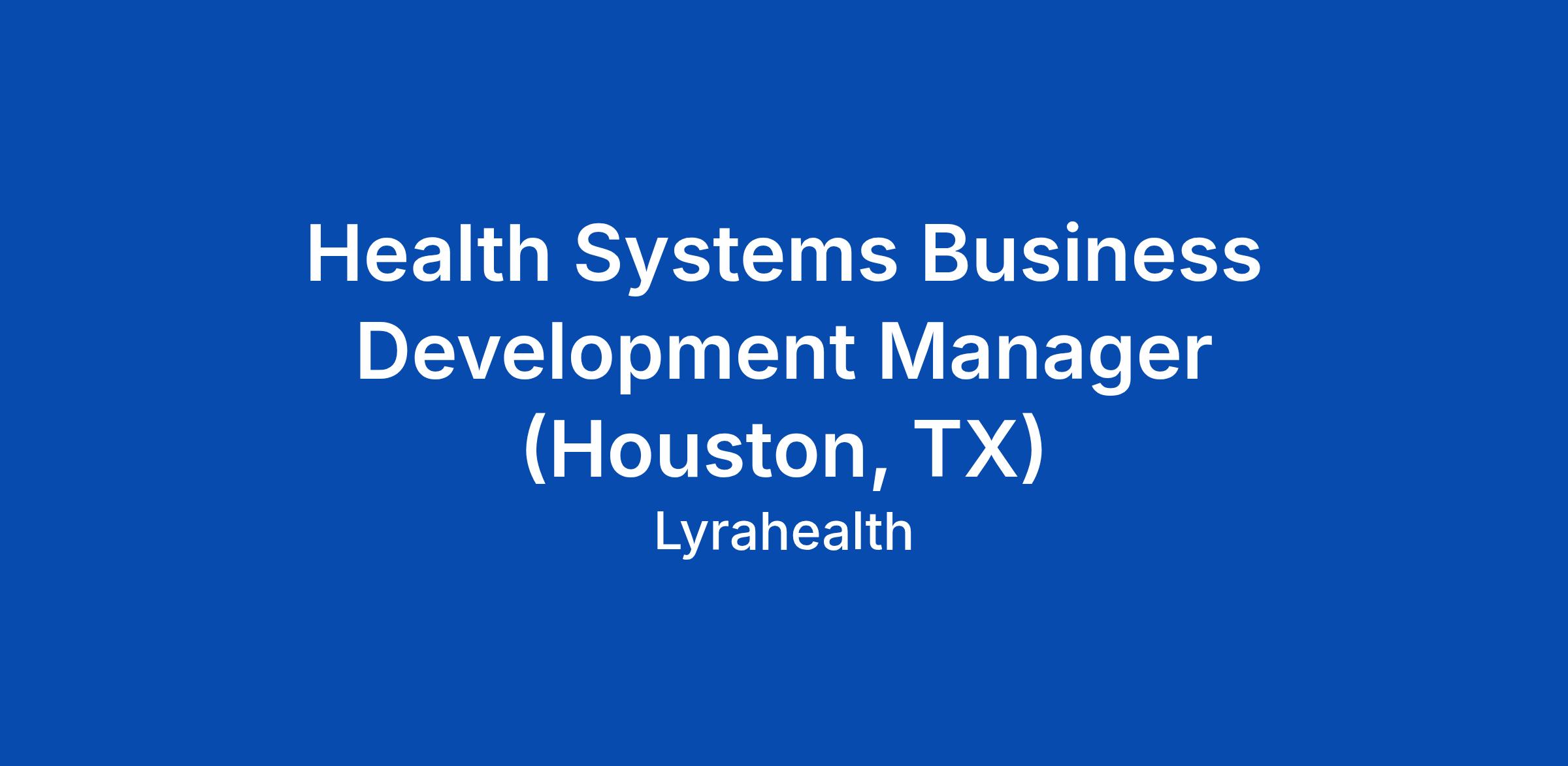 Health Systems Business Development Manager (Houston, TX)