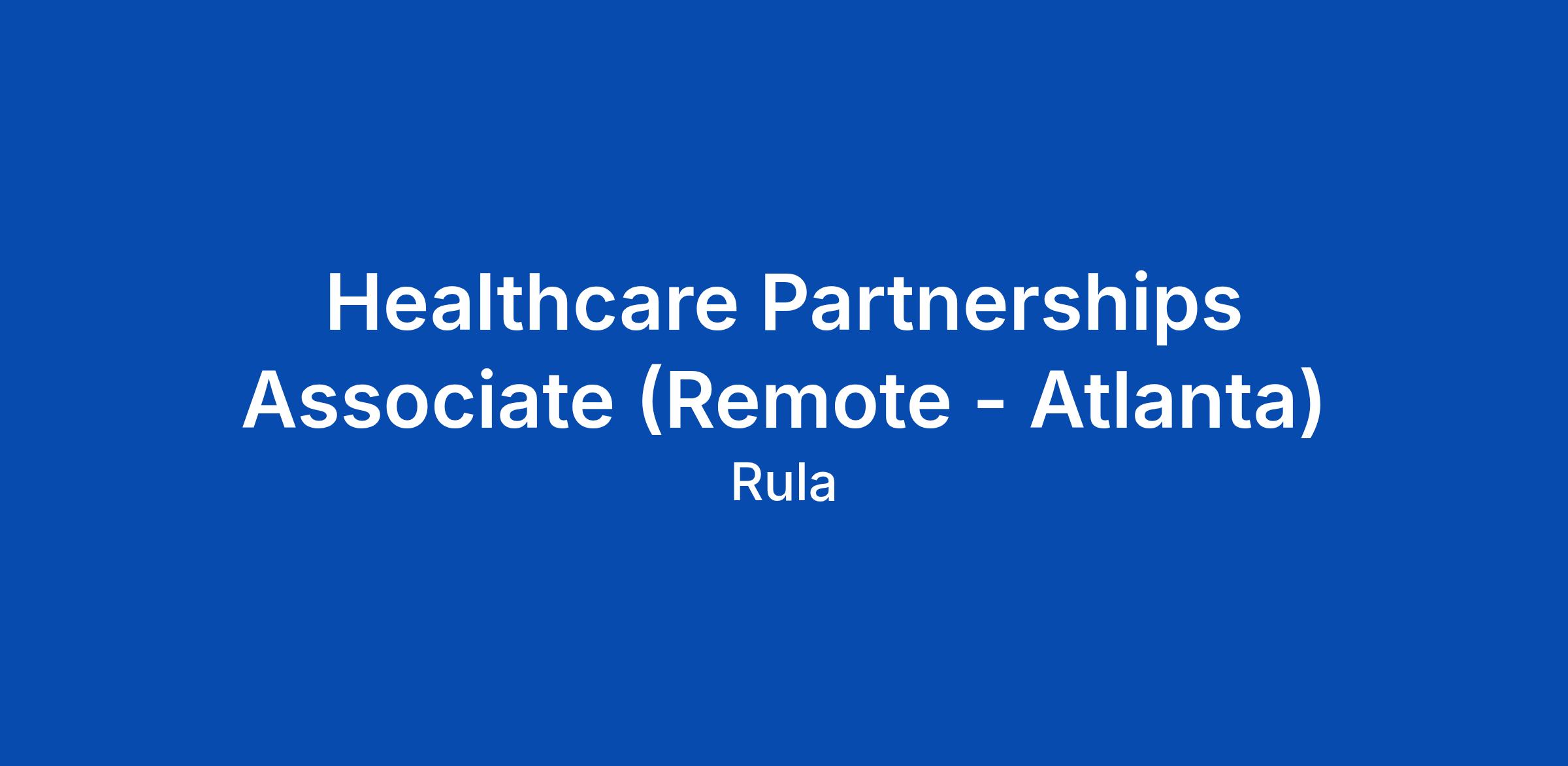 Healthcare Partnerships Associate (Remote - Atlanta)