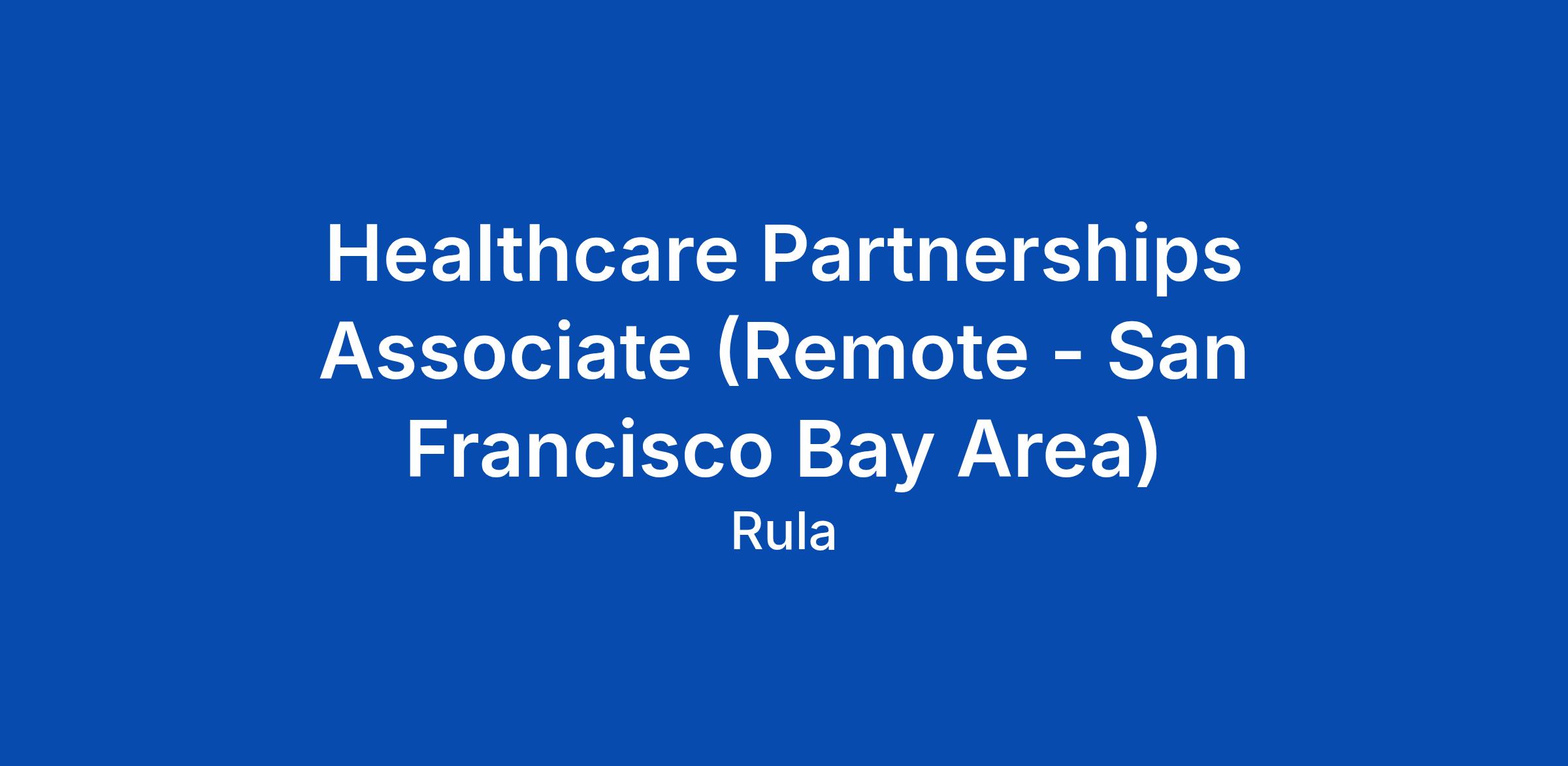 Healthcare Partnerships Associate (Remote - San Francisco Bay Area)
