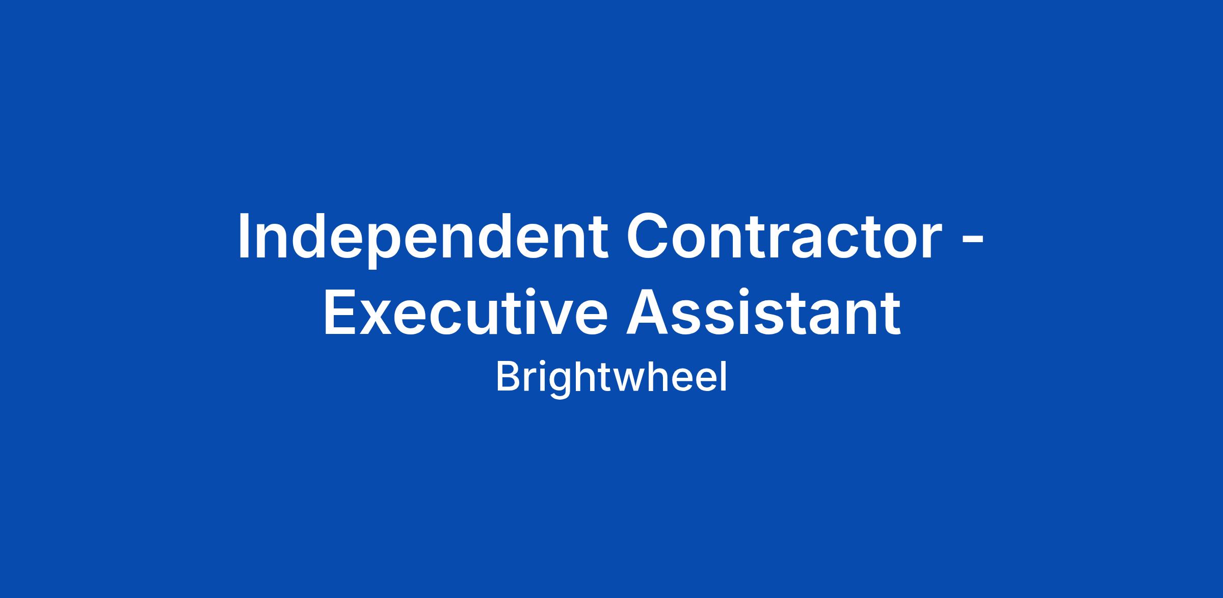 Our Mission and Opportunity Early education is one of the most important determinants of childhood outcomes, a critical support for working families, and a $175B market that remains underserved by modern technology. Brightwheel is the largest, fastest growing, and most loved platform in early ed, trusted by millions of educators and families every day. We are a three-time Cloud 100 company https://www.forbes.com/lists/cloud100/a, backed by top investors including Addition, Bessemer, Emerson Collective, Lowercase Capital, Notable Capital, and Mark Cuban. Our Team Our team is passionate, talented, and customer-focused. We embody our Leadership Principles https://mybrightwheel.com/about/ in our work and culture. We are a distributed team with remote employees across every US time zone, as well as select offices in the US and internationally. Who You Are Brightwheel is seeking an independent contractor to provide defined executive assistant support to our leadership team. We are seeking a contractor who is highly organized and proactive to support our senior leaders in operating at their highest impact by managing priorities, streamlining operations, and ensuring seamless coordination ... Click Apply to read the full job description.