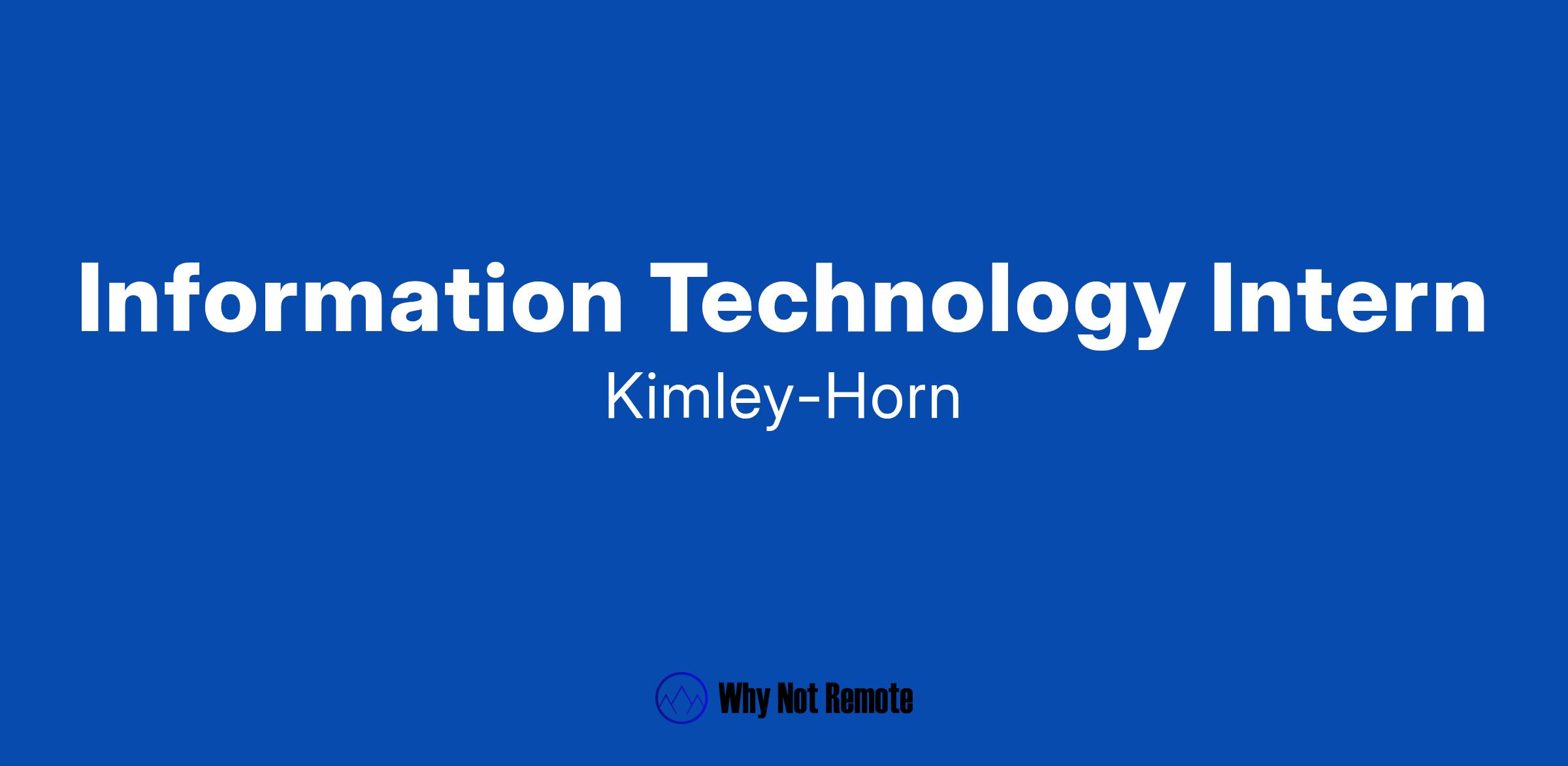 Kimley-Horn is looking for an Information Technology (IT) Intern in our Pleasanton, CA office. This is not a remote position.
