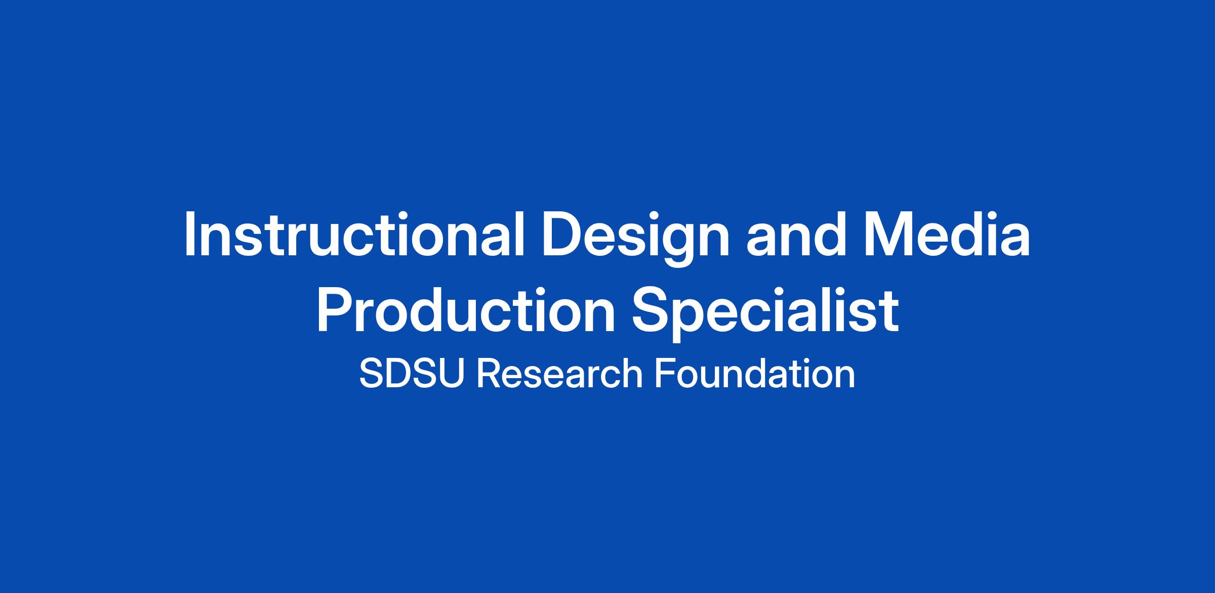 Under the direction of the Executive Director of Instructional Design, the Instructional Design and Media Production Specialist collaborates with faculty, academic departments, and technical staff to design, develop, and enhance online and hybrid courses.