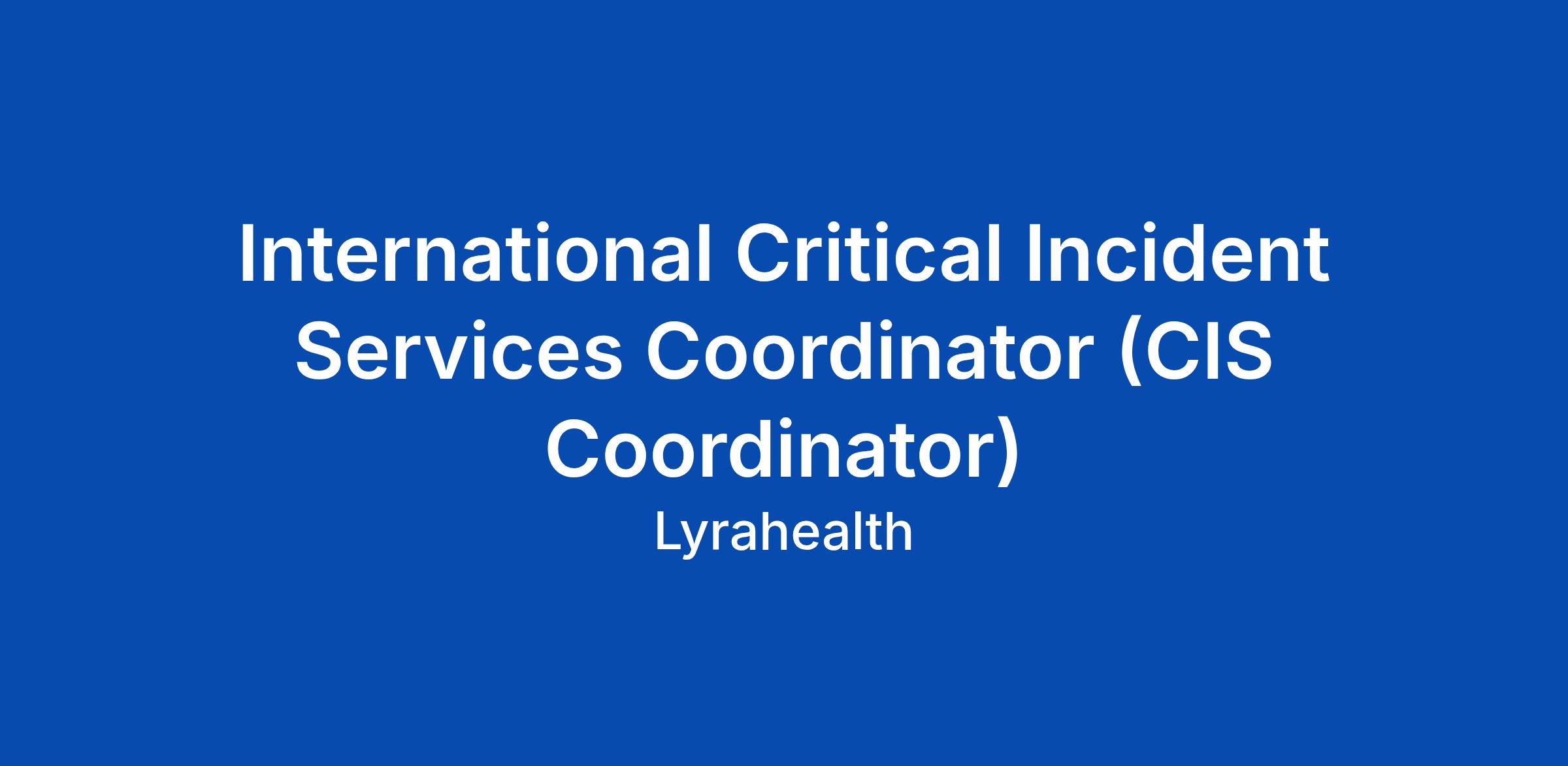 International Critical Incident Services Coordinator (CIS Coordinator)