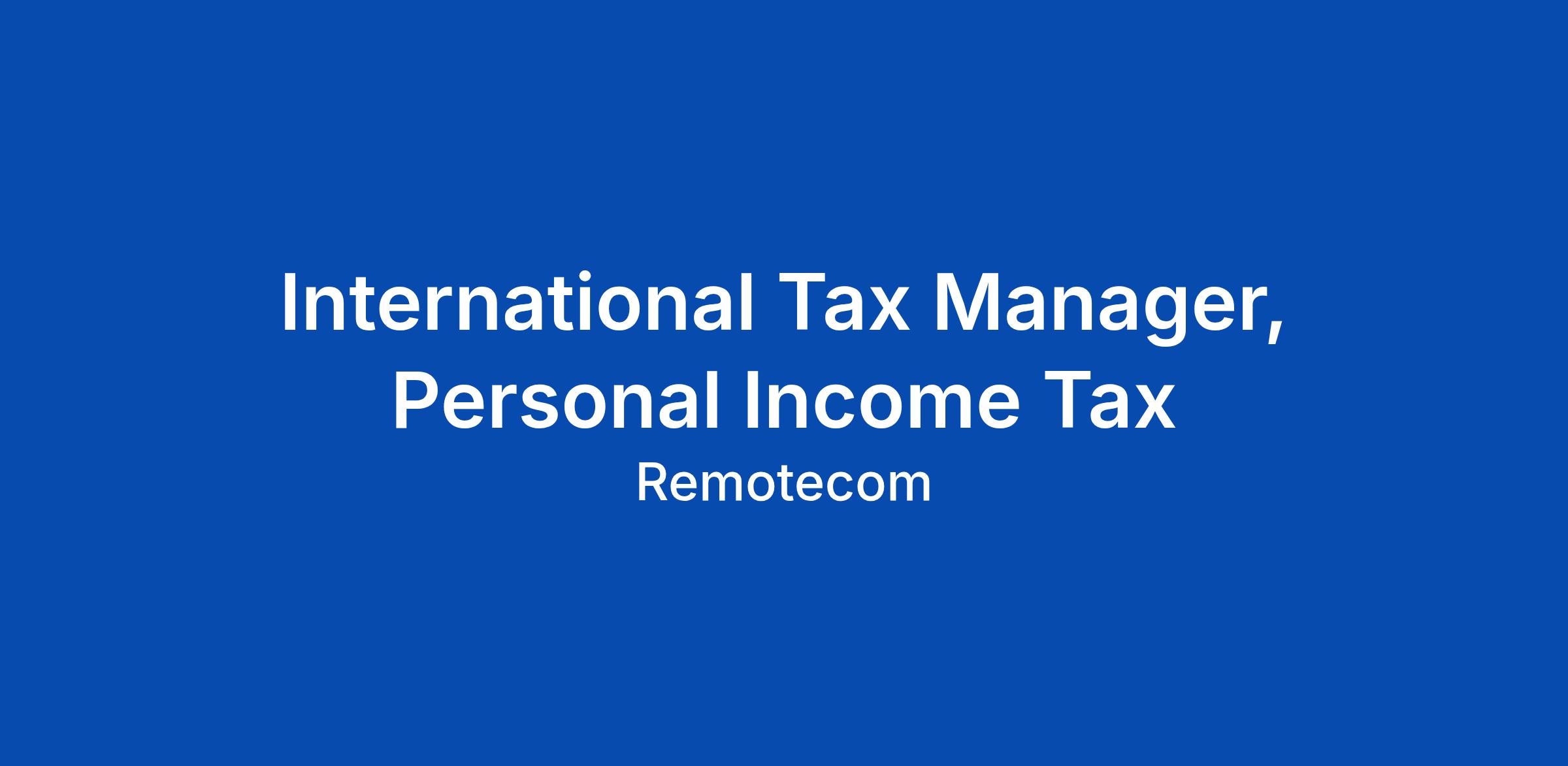 International Tax Manager, Personal Income Tax