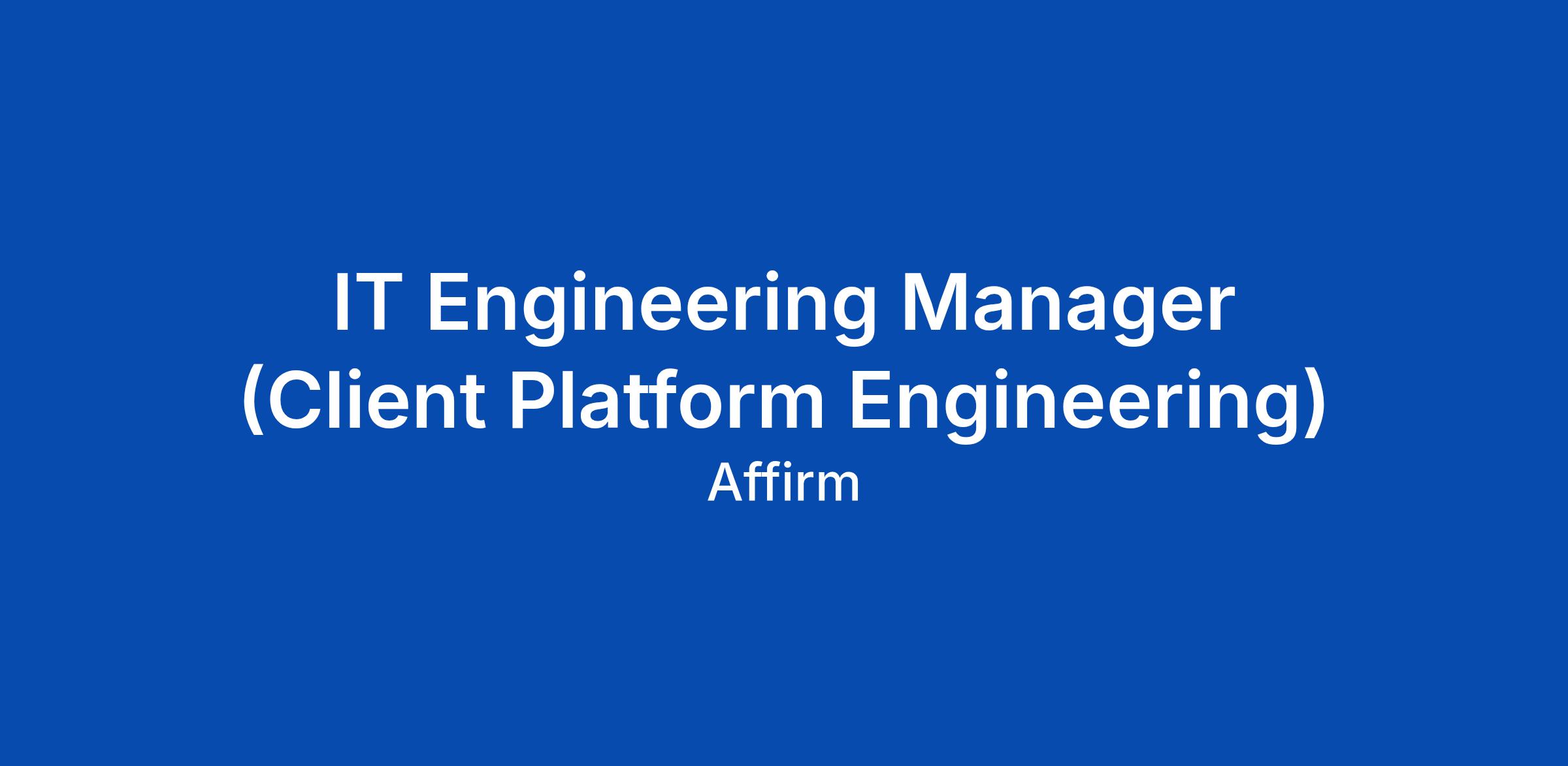 Client Platform Engineering builds and maintains the hardware and software at the heart of Affirm’s employee-facing operations. We’re a creative, cross-functional team that cares deeply about our craft and the working lives of Affirmers around the globe. We own Affirm’s endpoint platform and deliver scalable, secure solutions - including zero-touch provisioning, package and patch management, and silent updates - while partnering cross-functionally with teams like Security, Engineering, Product and Support. As a member of this team you’ll have direct influence over how Affirmers experience their workplace technology and the opportunity to lead high-impact projects that improve reliability, security, and productivity across an engaged global workforce.
