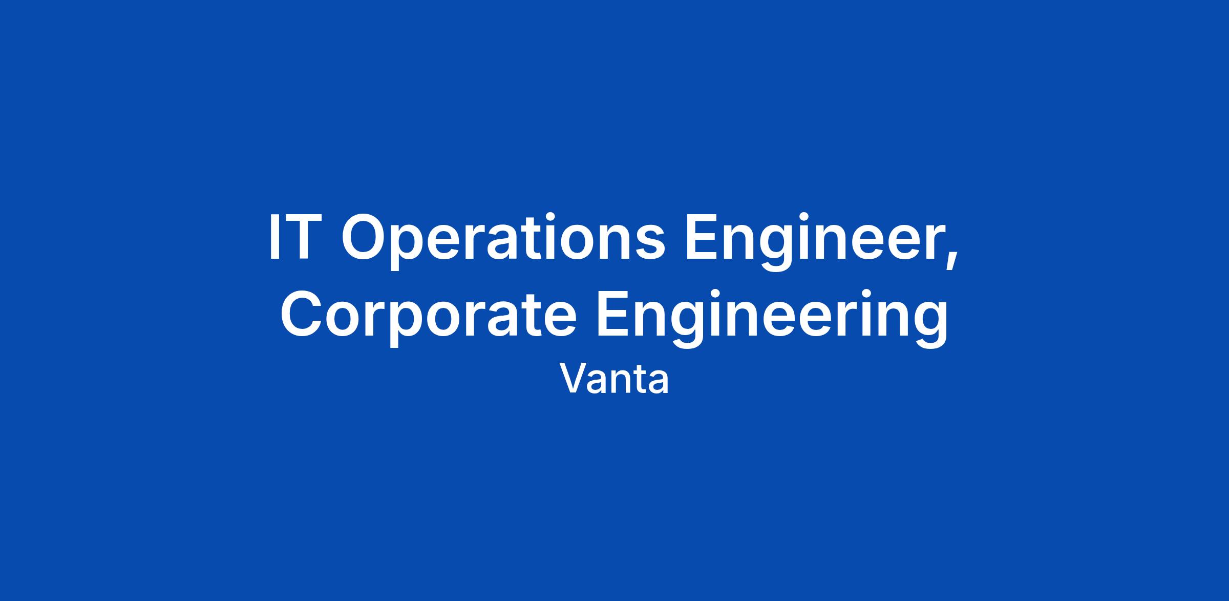 IT Operations Engineer, Corporate Engineering