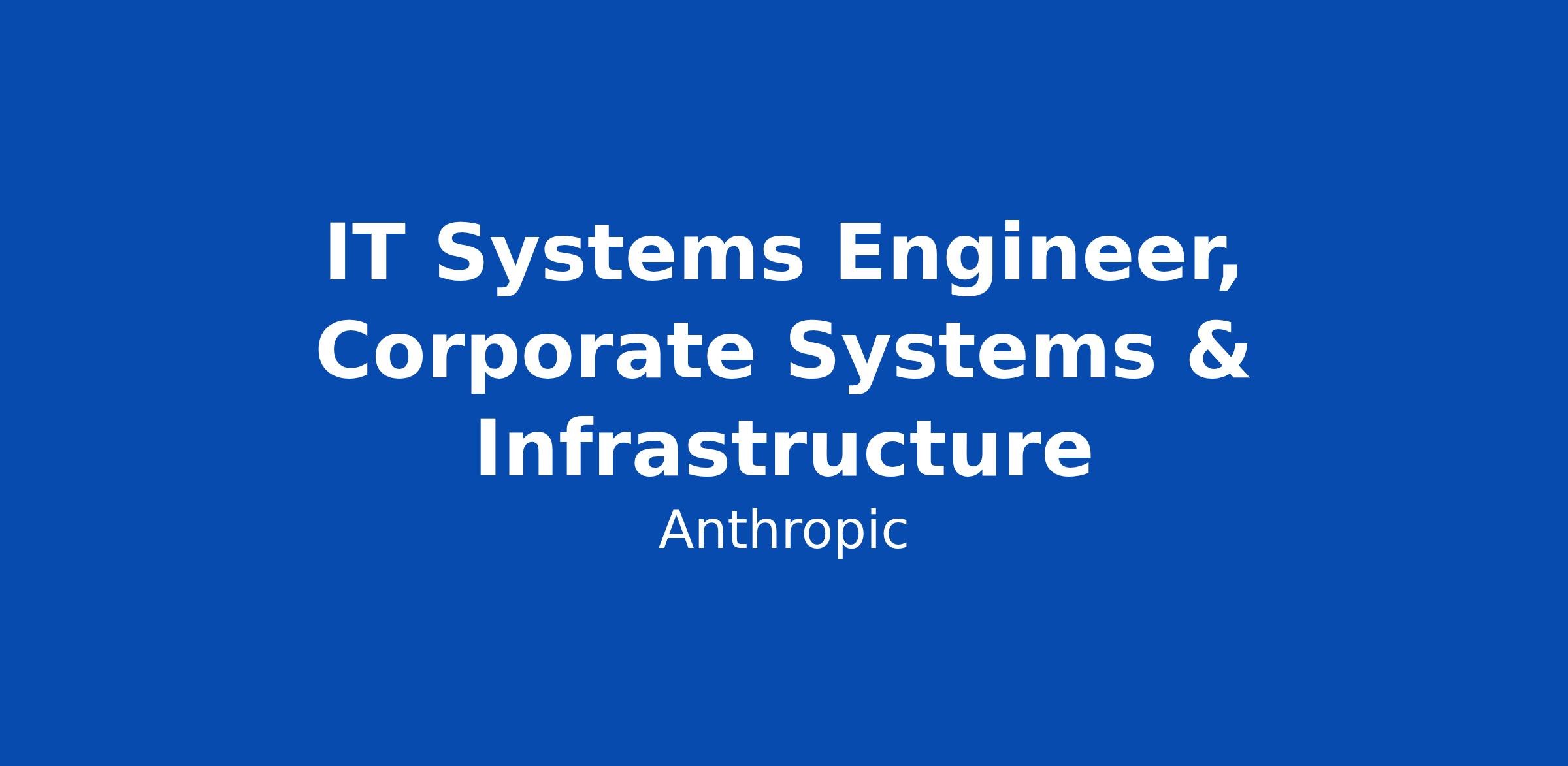 IT Systems Engineer, Corporate Systems & Infrastructure