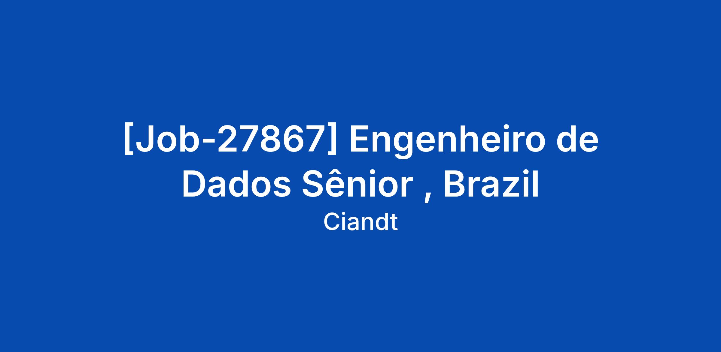 [Job-27867] Engenheiro de Dados Sênior , Brazil