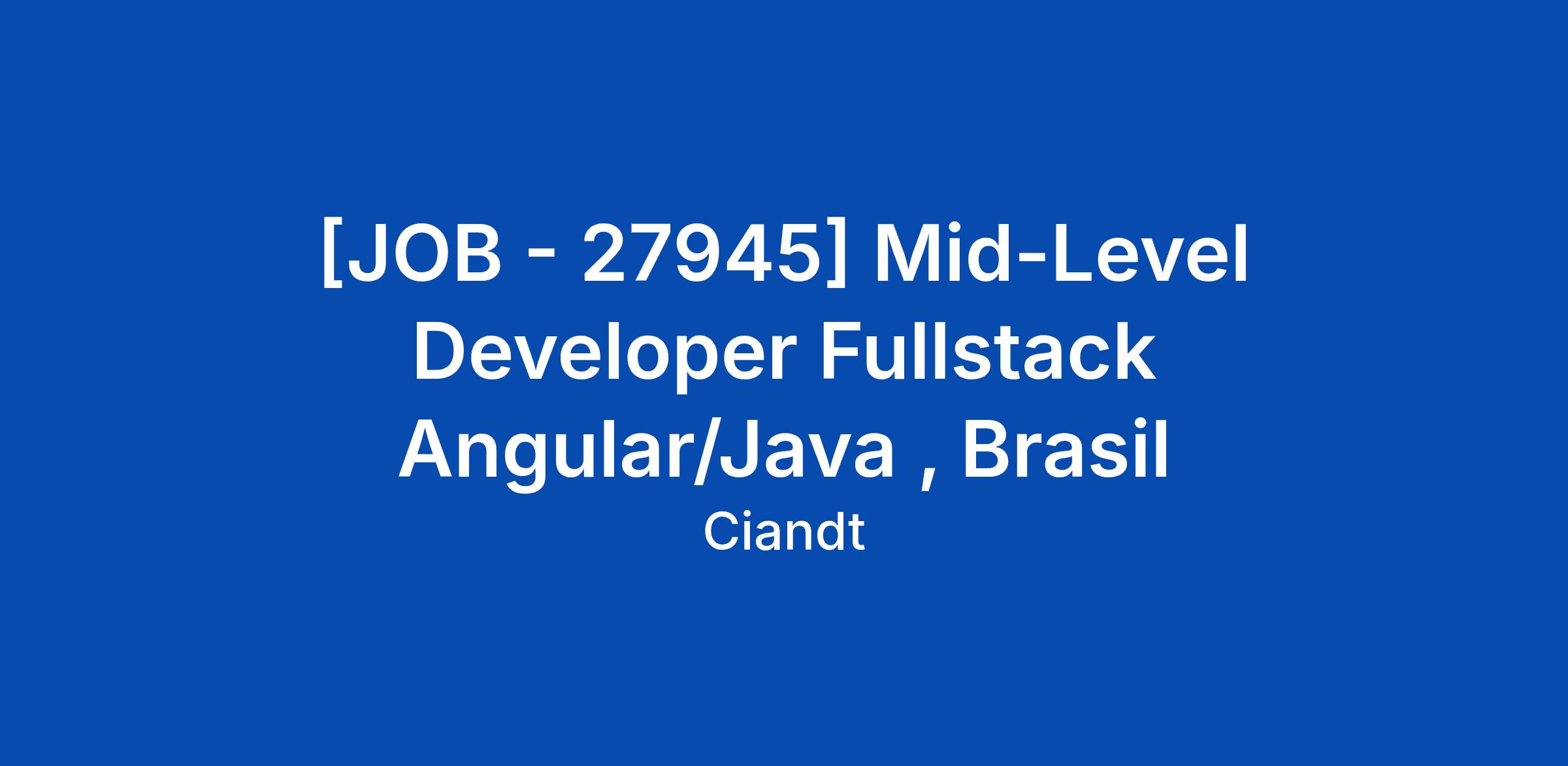 [JOB - 27945] Mid-Level Developer Fullstack Angular/Java , Brasil