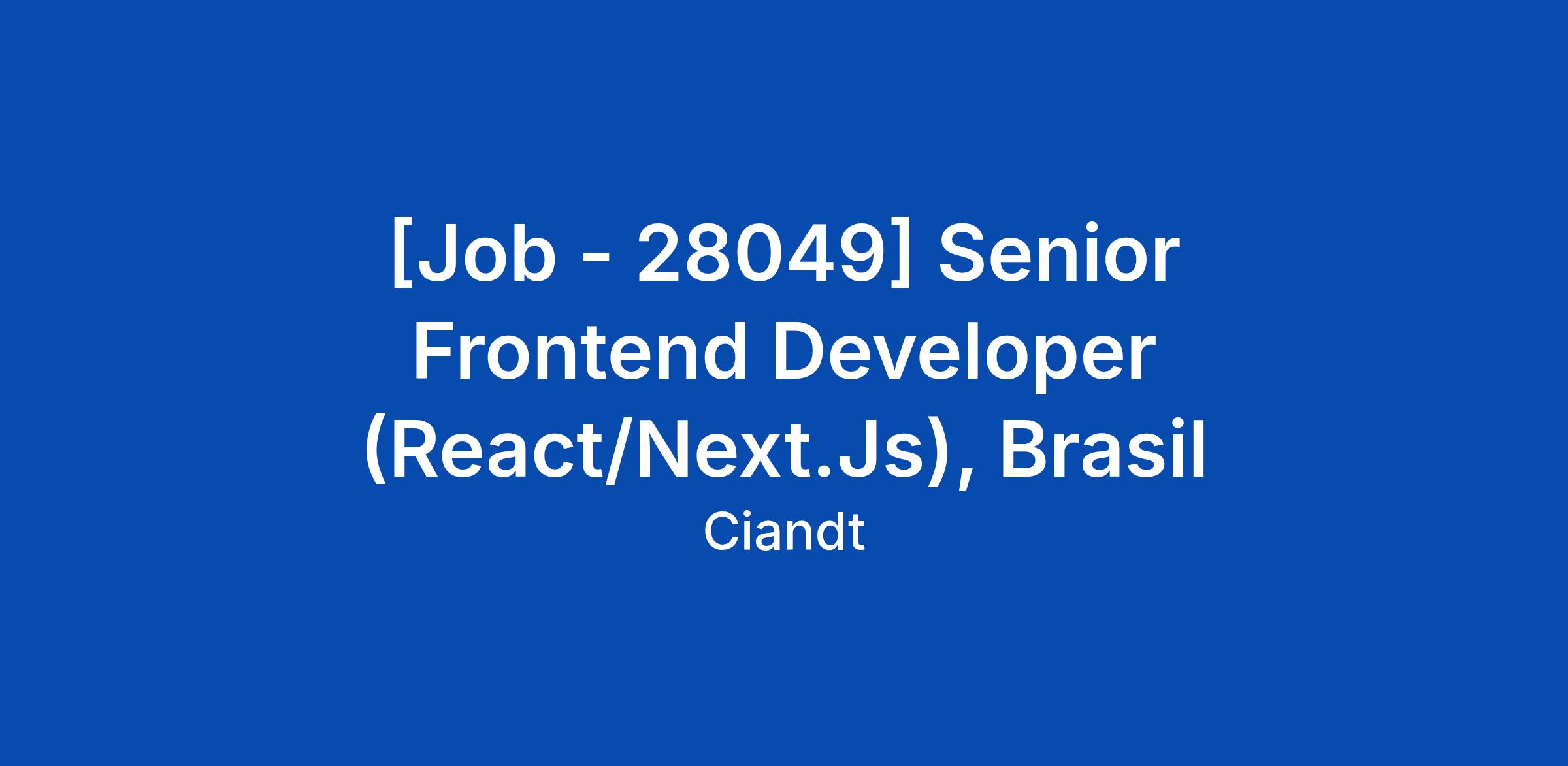 [Job - 28049] Senior Frontend Developer (React/Next.Js), Brasil
