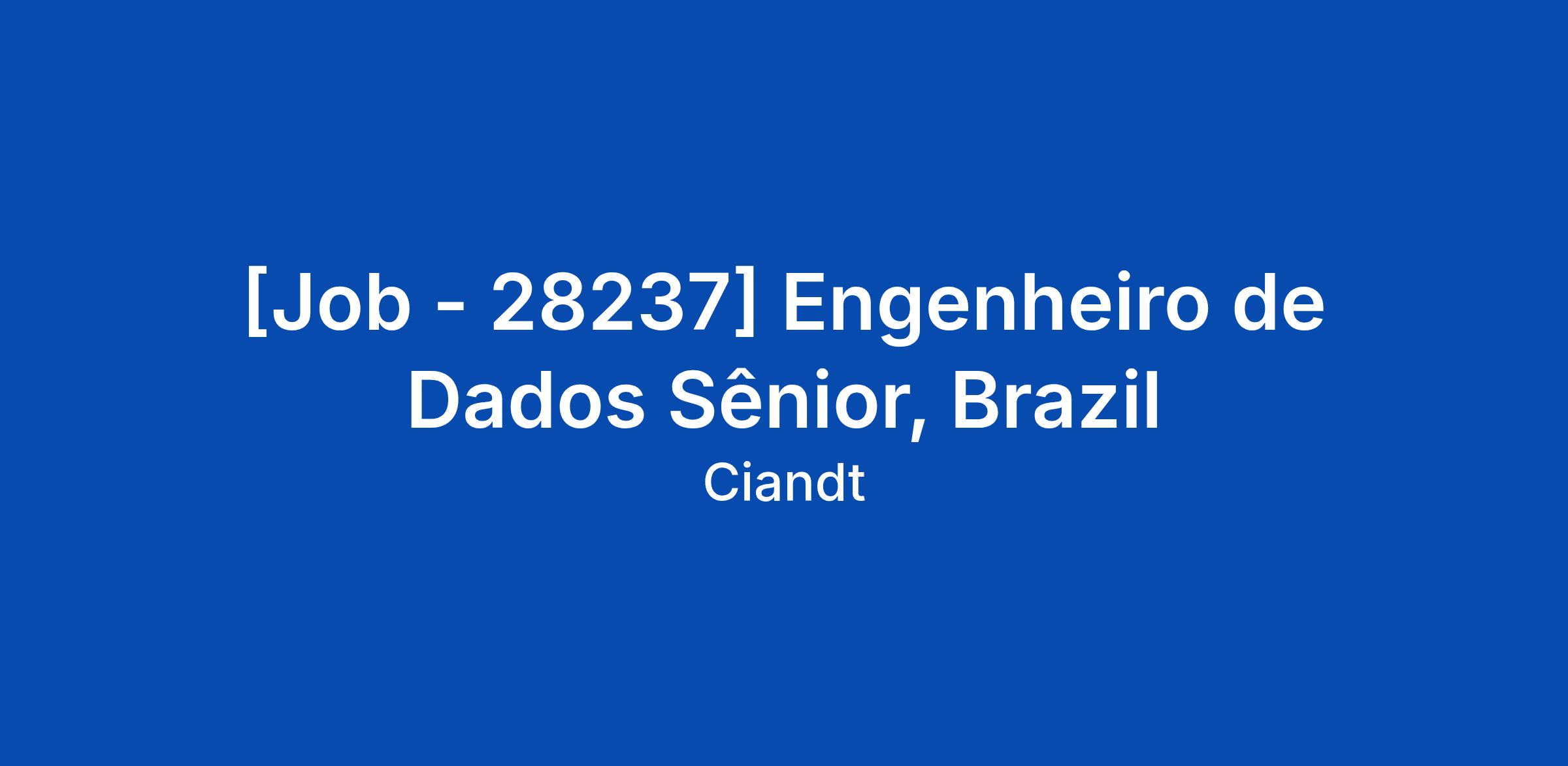 [Job - 28237] Engenheiro de Dados Sênior, Brazil