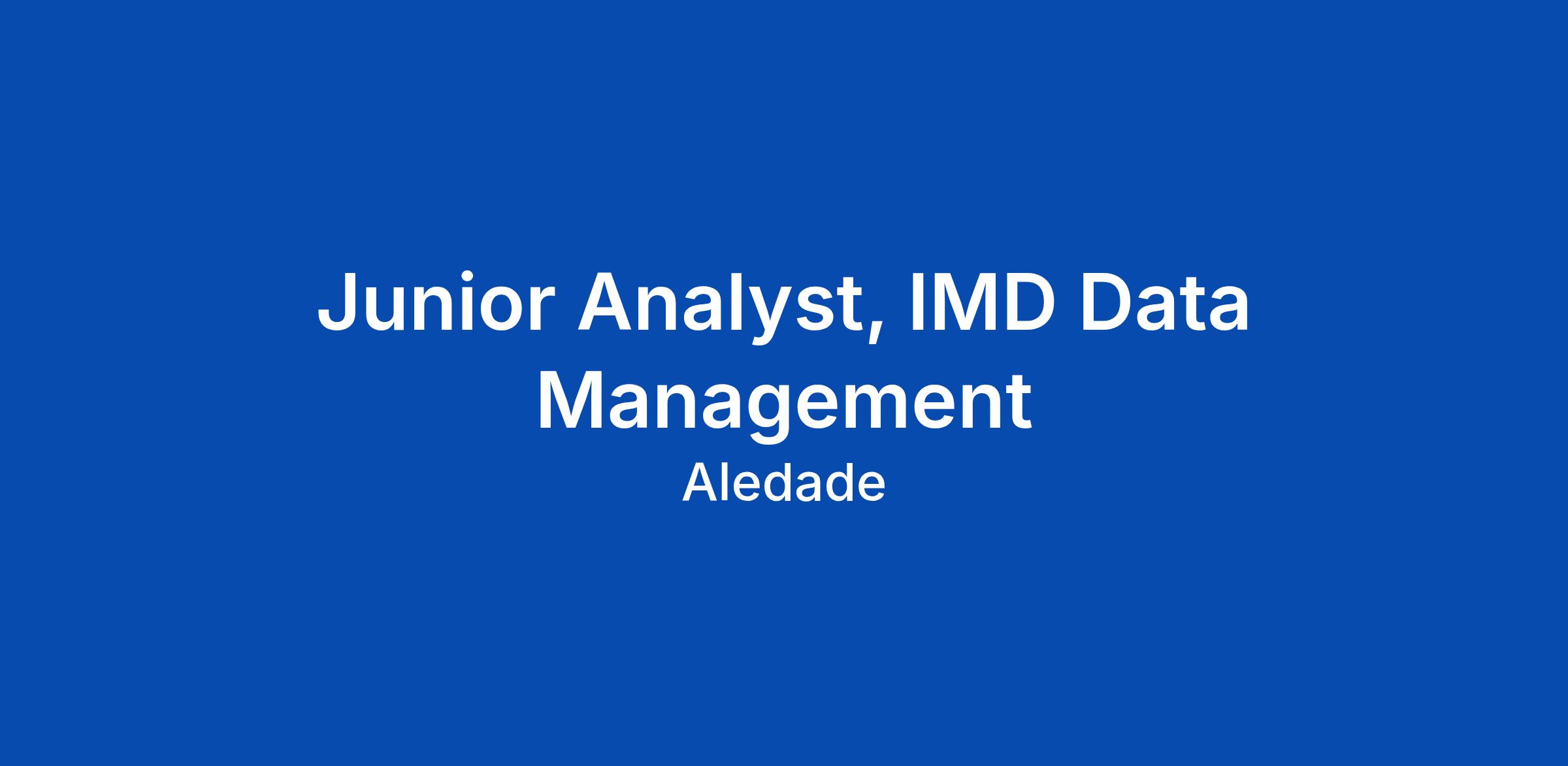 Junior Analyst, IMD Data Management