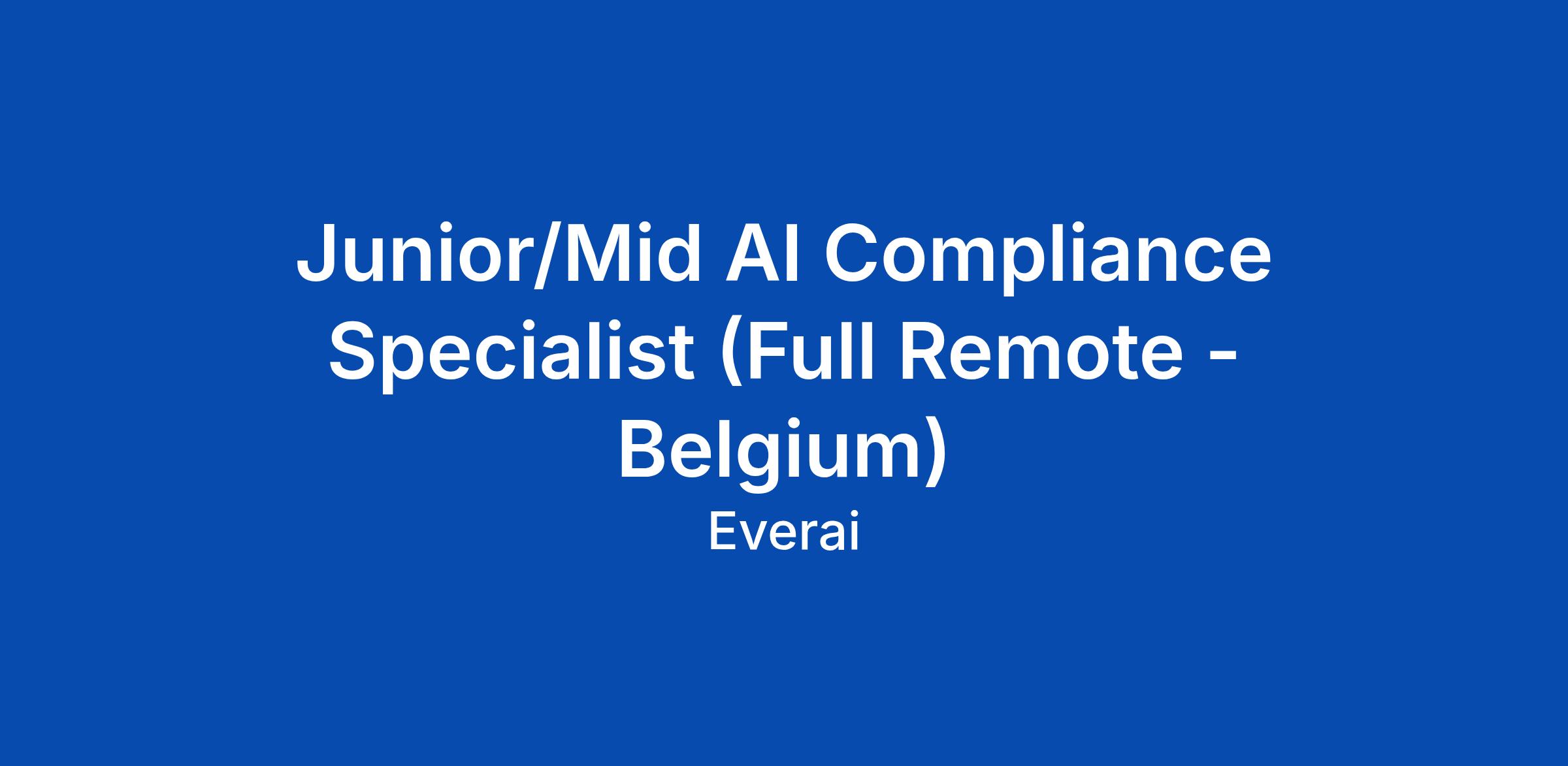 Junior/Mid AI Compliance Specialist (Full Remote - Belgium)