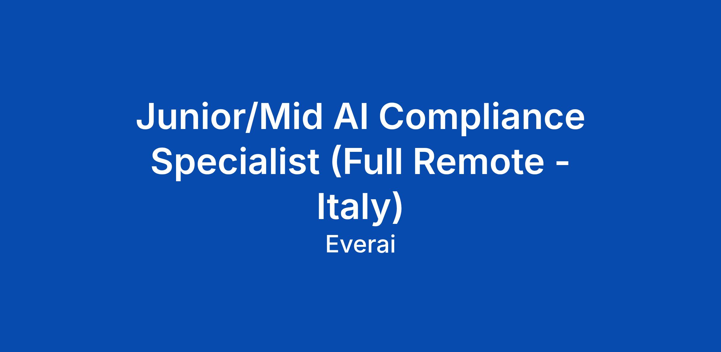 Junior/Mid AI Compliance Specialist (Full Remote - Italy)