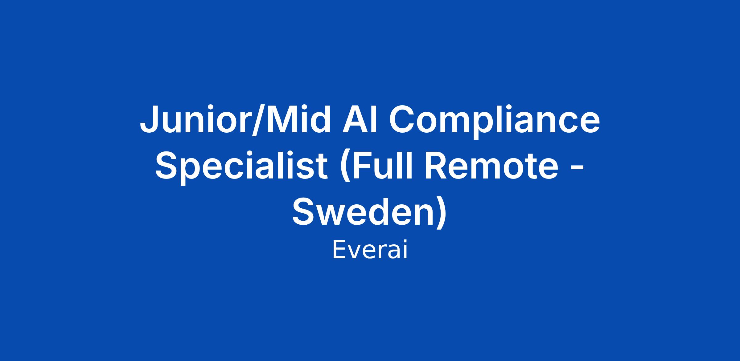 Junior/Mid AI Compliance Specialist (Full Remote - Sweden)