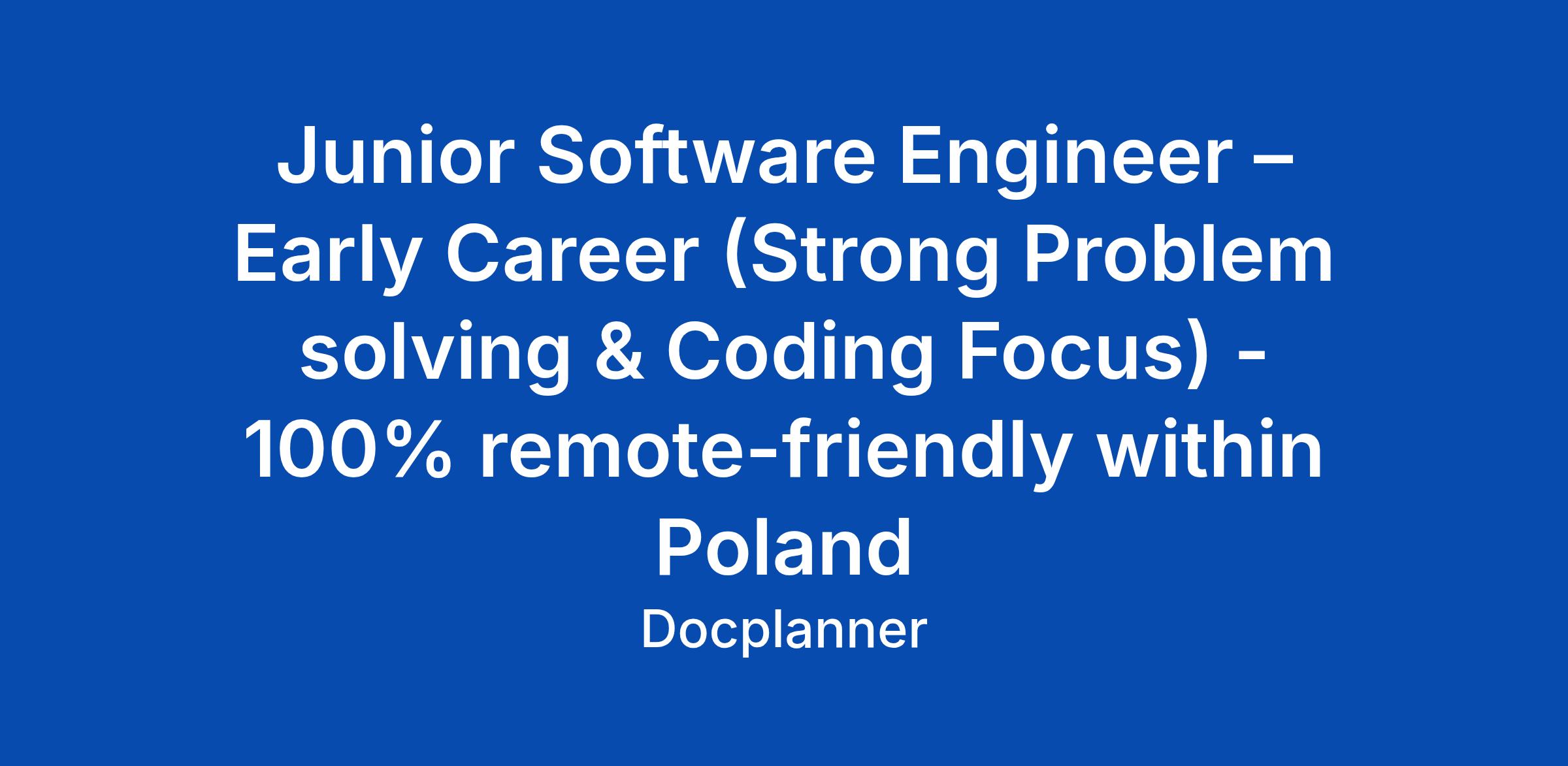 Junior Software Engineer β Early Career (Strong Problem solving & Coding Focus) - 100% remote-friendly within Poland