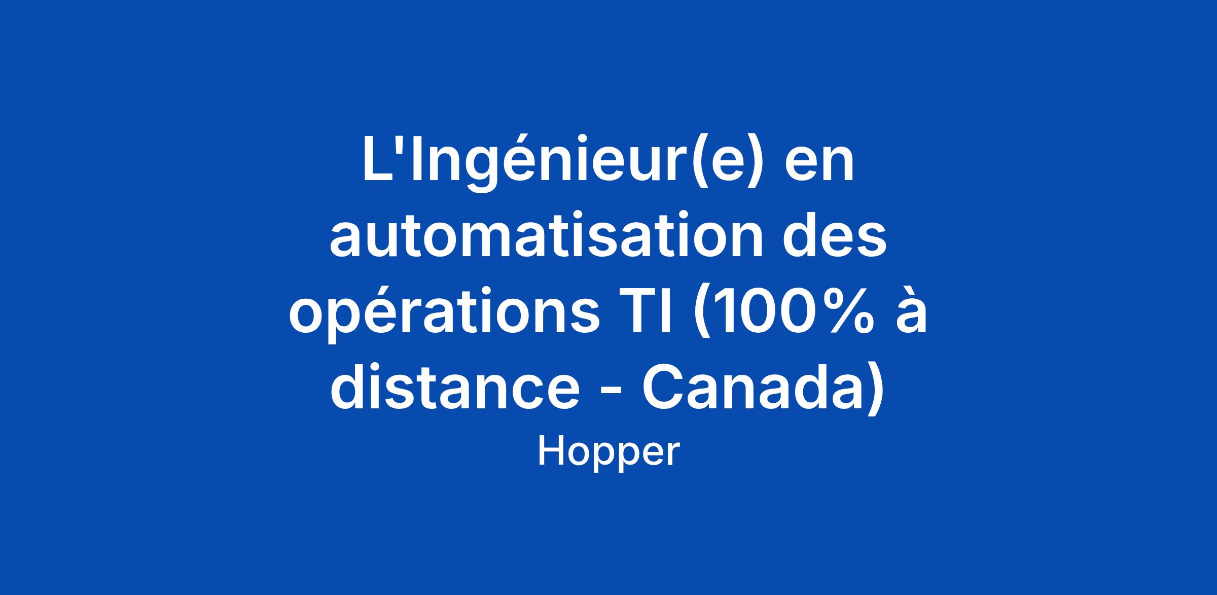 L'Ingénieur(e) en automatisation des opérations TI (100% à distance - Canada)