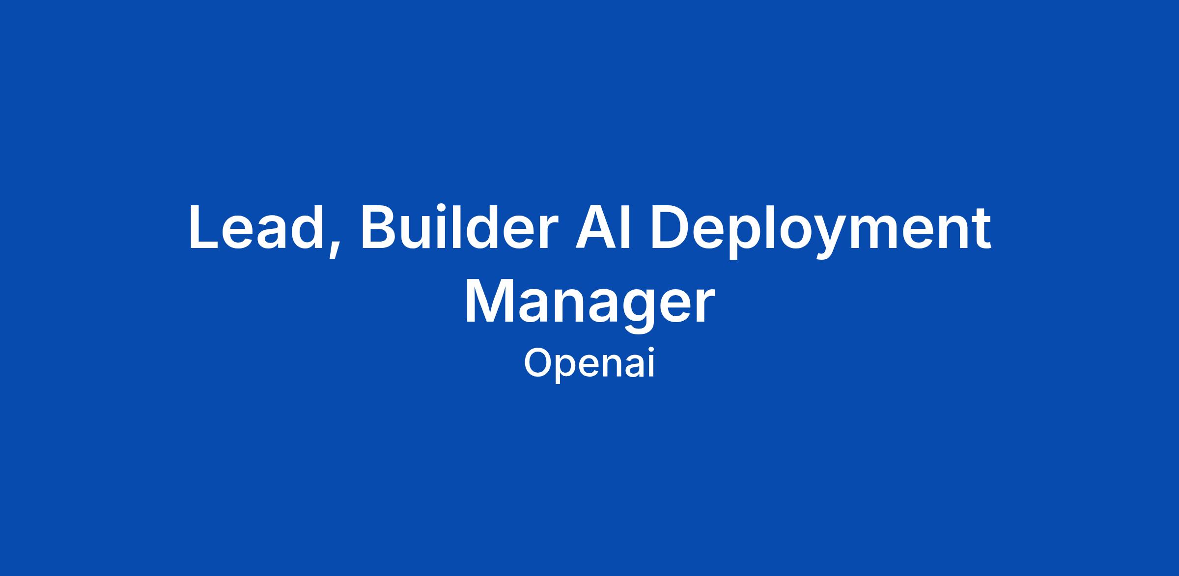 ABOUT THE TEAM The AI Deployment Management (ADM) team enables organizations to turn OpenAI products into real, sustained impact through world-class enablement and training execution. Our mission is to help customers successfully adopt and operationalize AI across their organizations. We partner with enterprises to translate the potential of OpenAIβs technology into durable capabilityβthrough structured training, technical enablement, and scalable deployment programs. By helping customers move from experimentation to production, the ADM team accelerates time-to-value, deepens product adoption, and helps make OpenAI indispensable to how organizations work. ABOUT THE ROLE We are looking for a Lead, Builder ADM to lead a team responsible for enabling enterprise customers to successfully deploy and adopt OpenAI products in the Enterprise. This role combines technical leadership, customer enablement, and people management. You will build and develop a team of AI Deployment Managers while shaping scalable enablement programs that help organizations operationalize frontier AI technologies across our existing and emerging product suite. You will work closely with Sales, Technical Success,