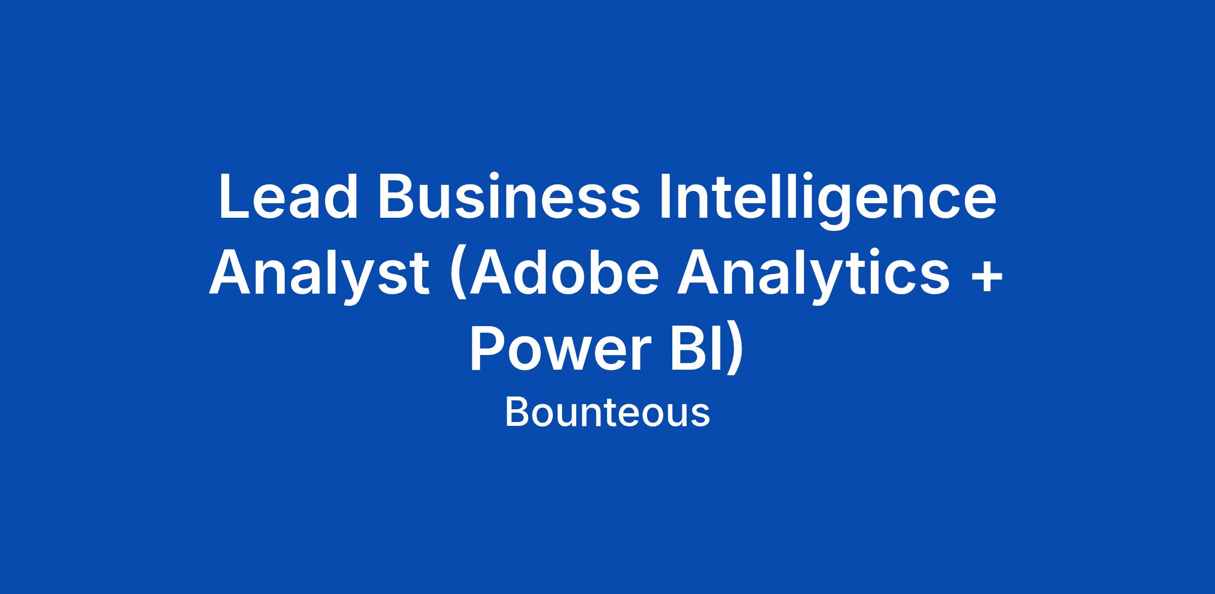 Lead Business Intelligence Analyst (Adobe Analytics + Power BI)