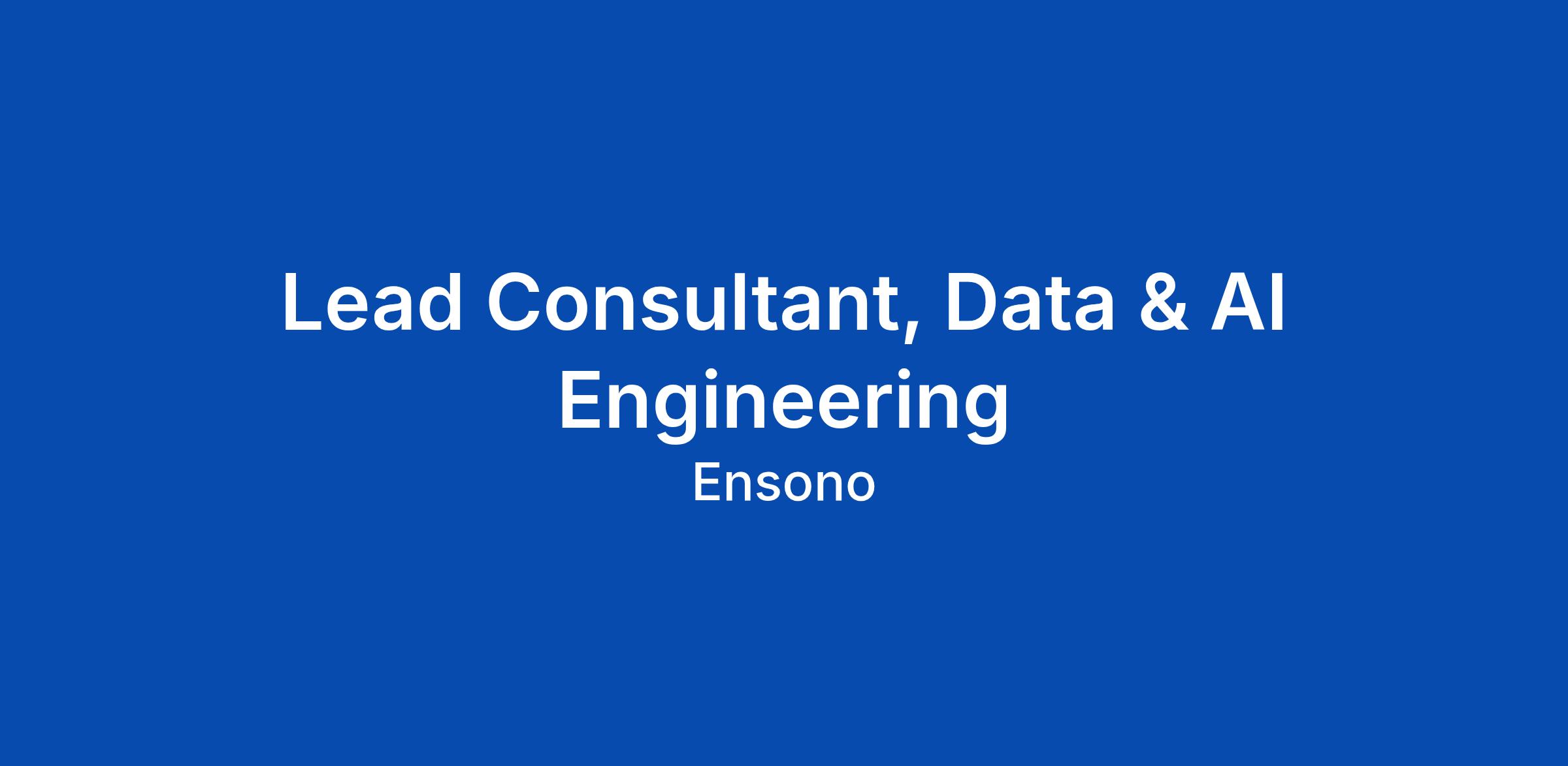 Lead Consultant, Data & AI Engineering