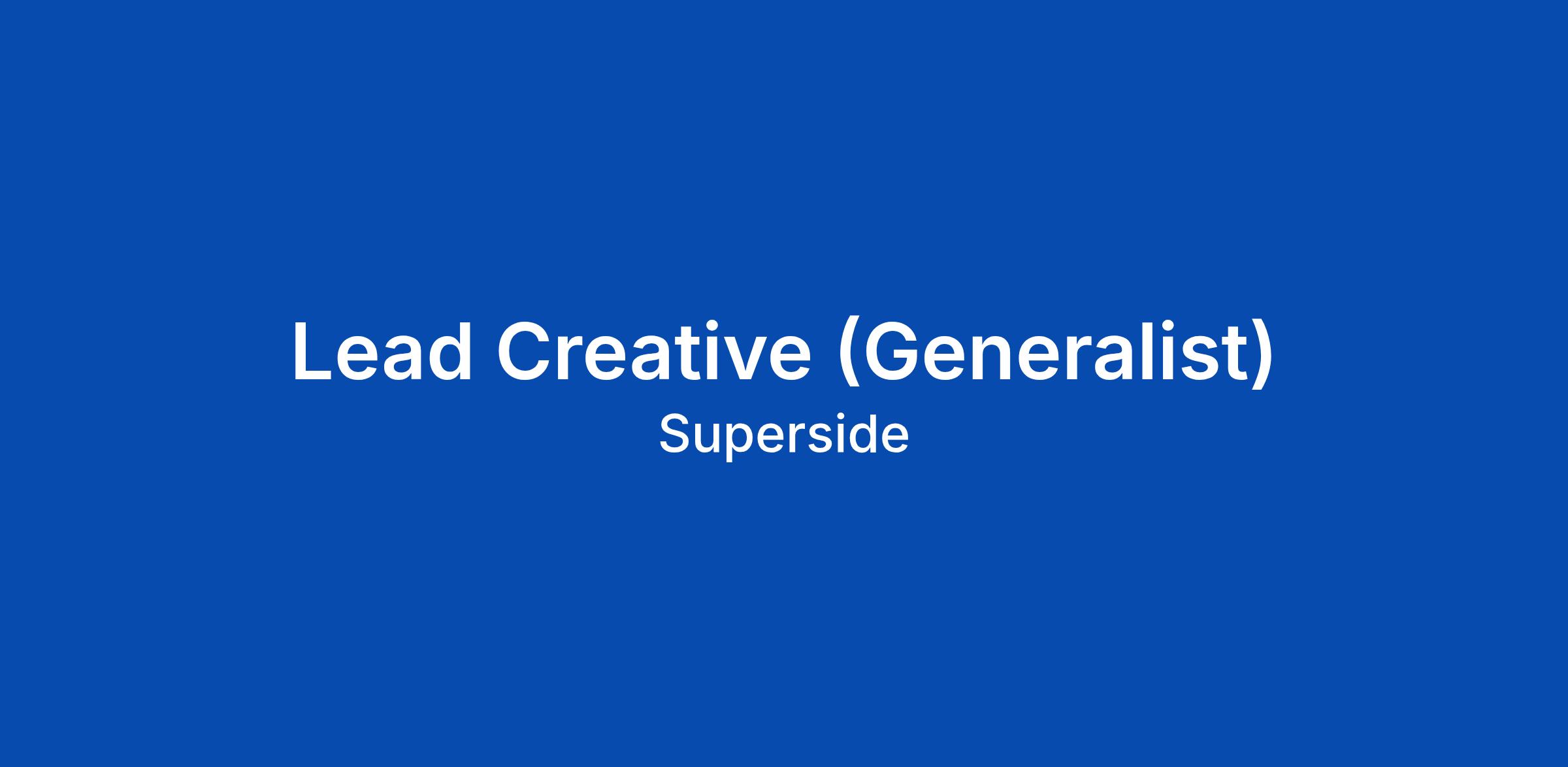 Superside is looking for a Lead Creative with a passion for Generative AI to shape creative excellence across branding, landing pages, ads, social, print, and presentations. Youβll guide a global team of talented designers, combining strategic leadership with hands-on craft to deliver human-centered, high-impact work for leading brands worldwide.