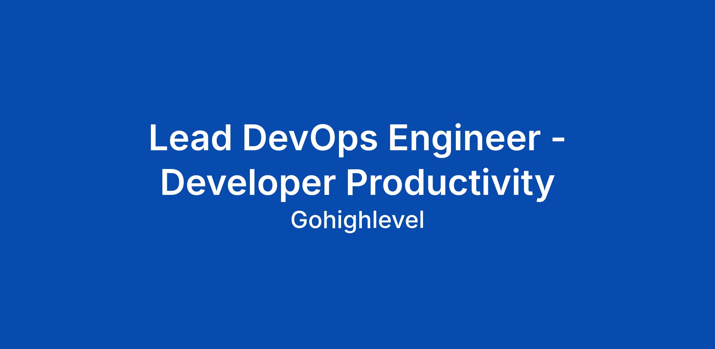 Lead DevOps Engineer - Developer Productivity