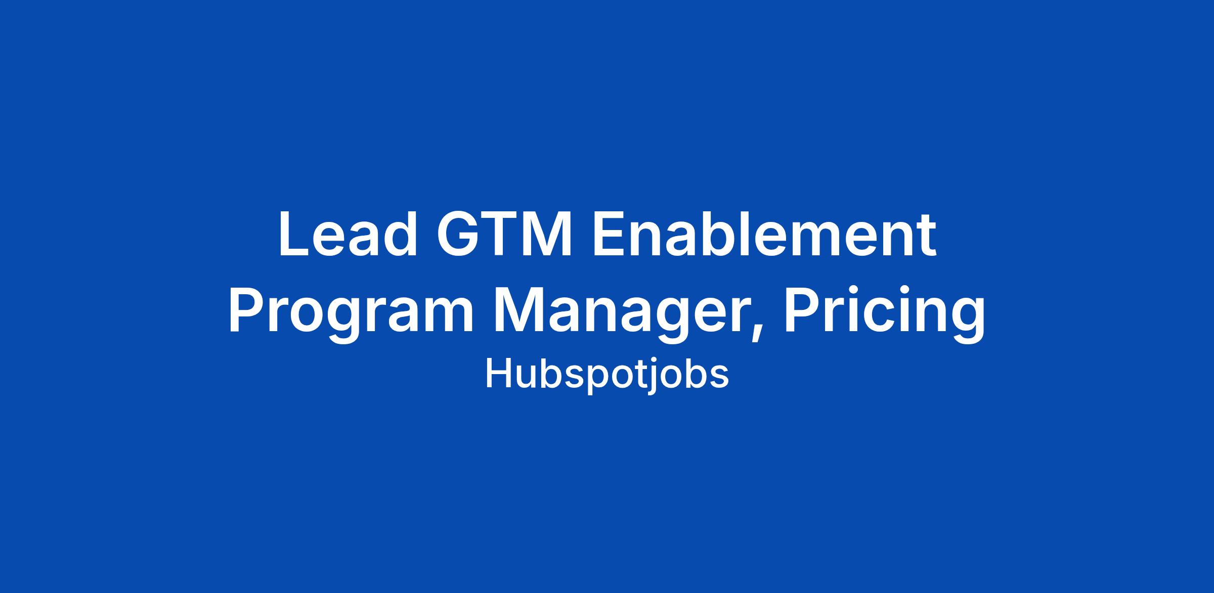 Lead GTM Enablement Program Manager, Pricing