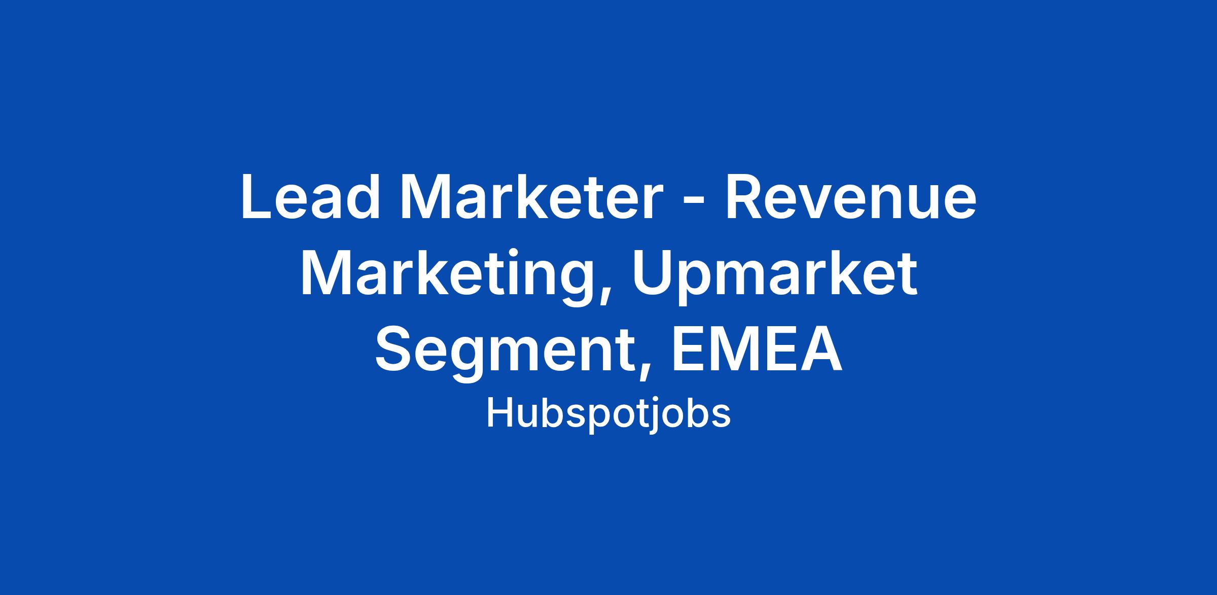 Lead Marketer - Revenue Marketing, Upmarket Segment, EMEA