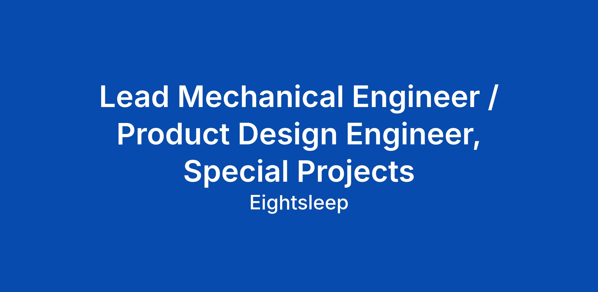 Lead Mechanical Engineer / Product Design Engineer, Special Projects