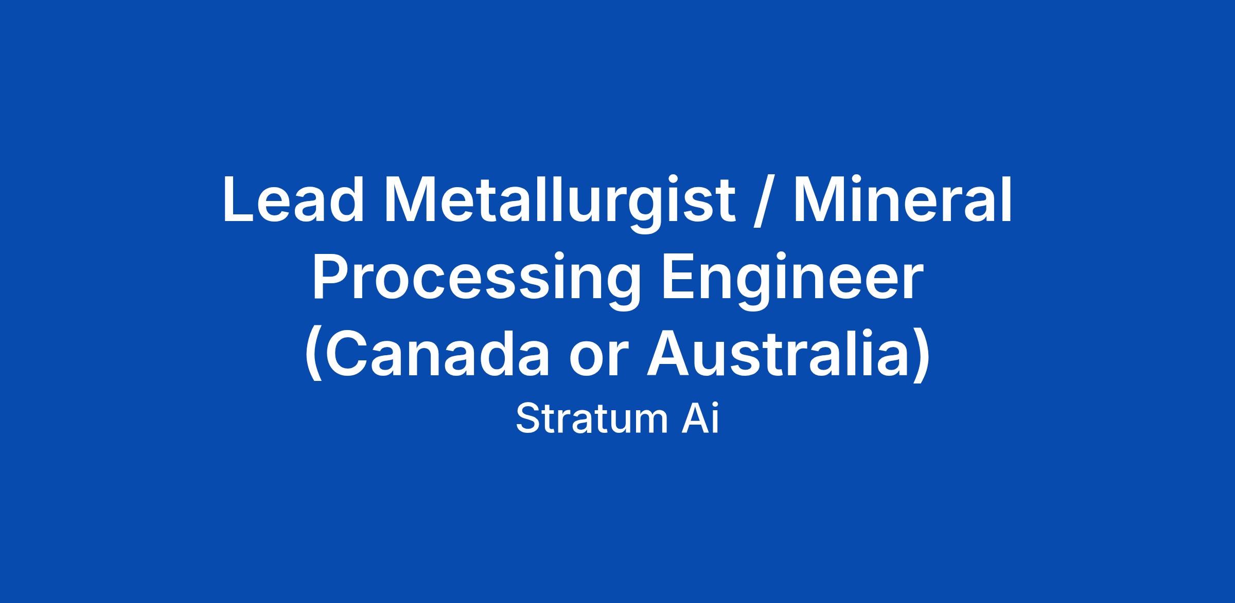 Lead Metallurgist / Mineral Processing Engineer (Canada or Australia)