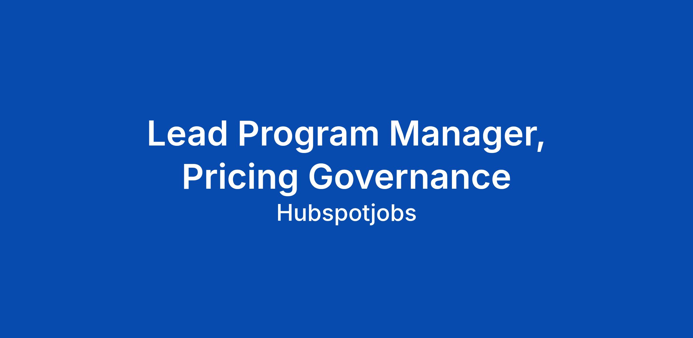 Lead Program Manager, Pricing Governance
