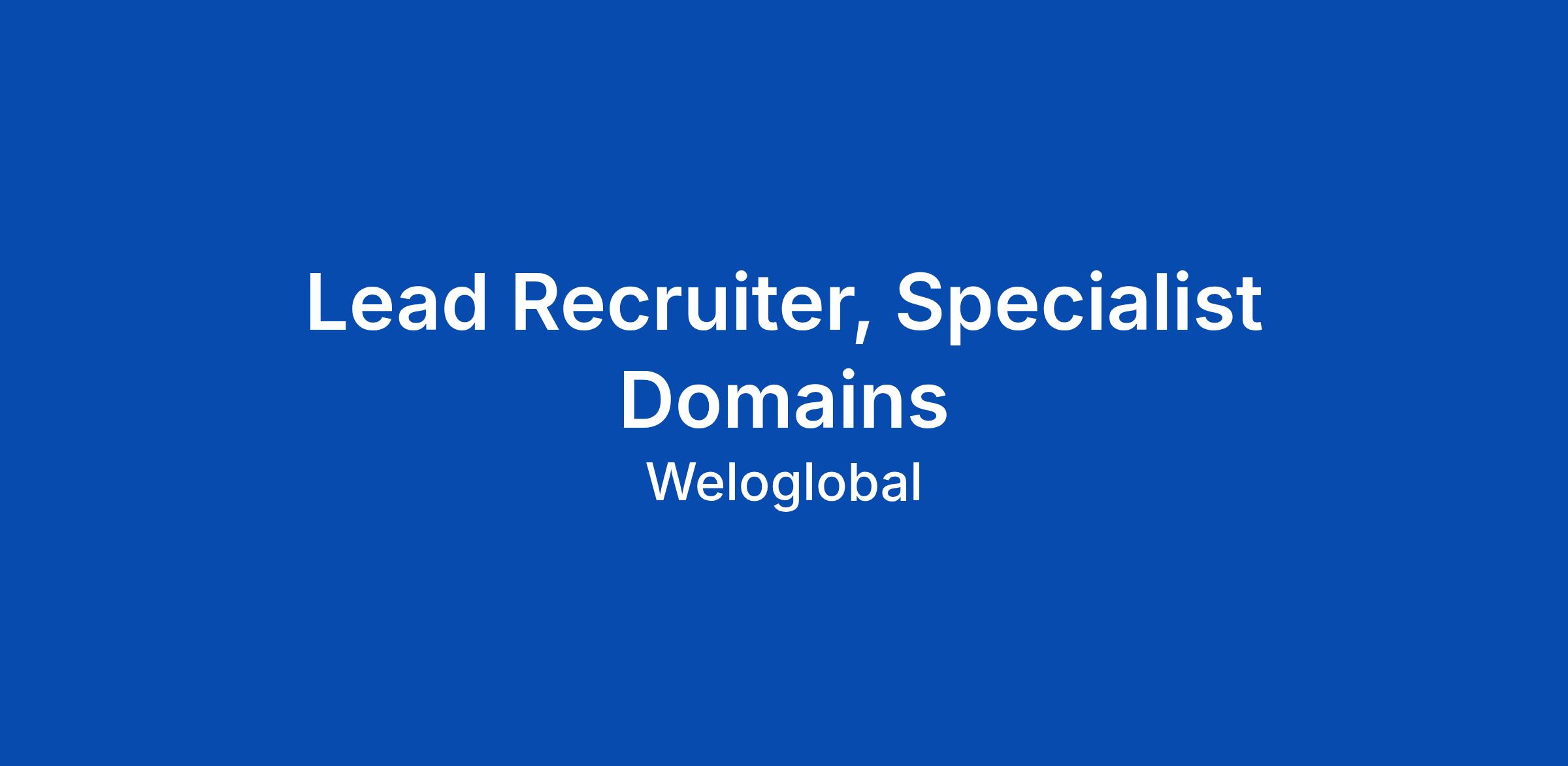 As a trusted global transformation partner, Welocalize accelerates the global business journey by enabling brands and companies to reach, engage, and grow international audiences. Welocalize delivers multilingual content transformation services in translation, localization, and adaptation for over 250 languages with a growing network of over 400,000 in-country linguistic resources. Driving innovation in language services, Welocalize delivers high-quality training data transformation solutions for NLP-enabled machine learning by blending technology and human intelligence to collect, annotate, and evaluate all content types. Our team works across locations in North America, Europe, and Asia serving our global clients in the markets that matter to them. www.welocalize.com To perform this job successfully, an individual must be able to perform each essential duty satisfactorily. The requirements listed below are representative of the knowledge, skill, and/or ability required. Reasonable accommodations may be made to enable individuals with disabilities to perform the essential functions. Overview The Lead Recruiter, Specialist Domains owns the end-to-end recruitment of highly credentia