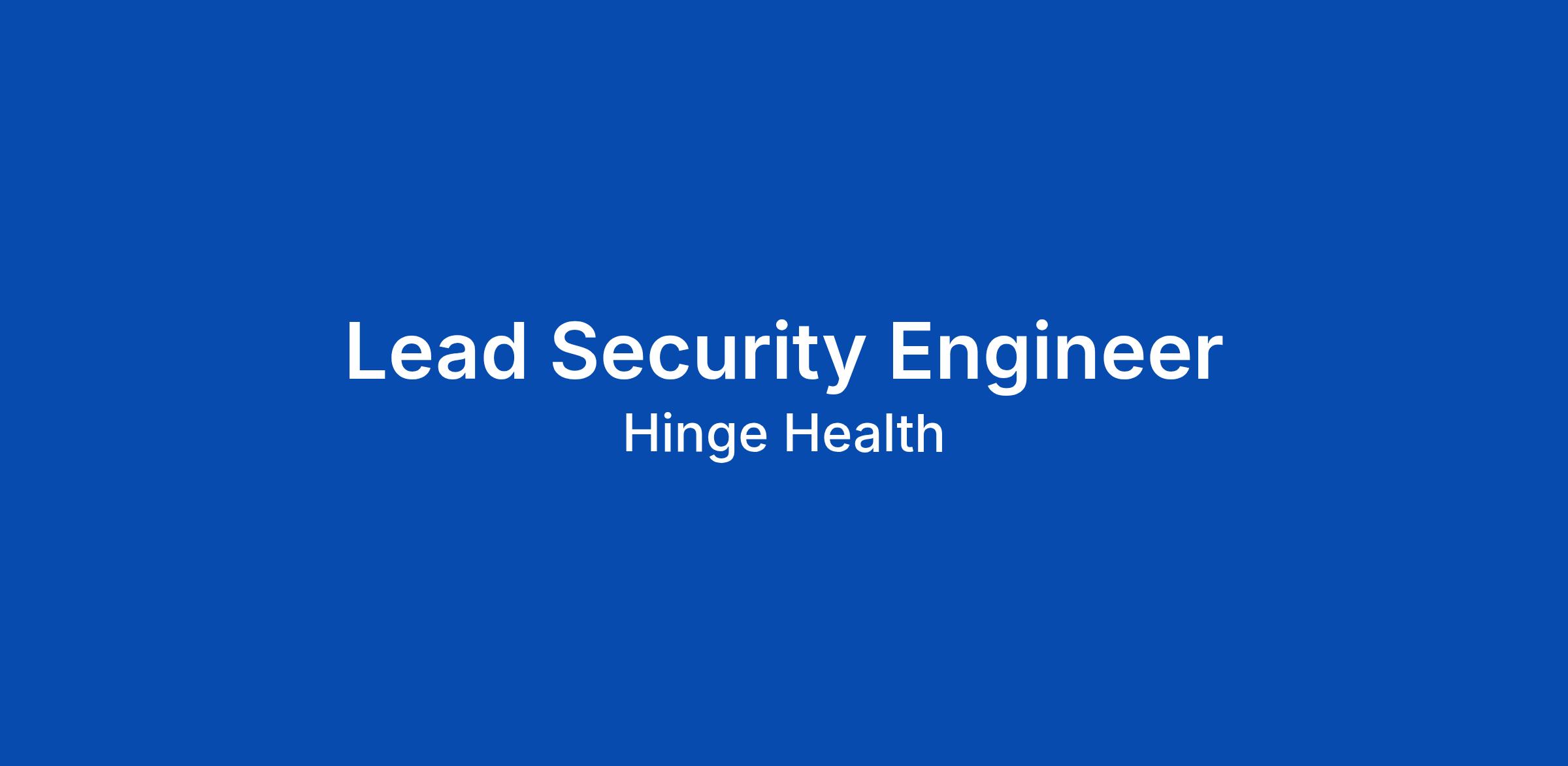 THE OPPORTUNITY Join the team securing the platform that helps millions of people move beyond musculoskeletal pain. As Hinge Health's engineering organization embraces AI-assisted development β including AI-powered code generation, automated PR review workflows, agent sandboxing, and MCP gateway integrations β we need a Lead Security Engineer who will build the security guardrails, tooling, and standards that ensure we ship with confidence. You'll sit at the critical intersection of cloud security, AI-enabled engineering, and identity & access management, partnering closely with Application Security, SRE, and R&D Engineering to design and enforce security-by-design principles across our AWS environment, CI/CD pipelines, and developer tooling. This is your chance to make a real impact on the lives of millions by driving advancements in healthcare security β ensuring utmost compliance and privacy while enabling engineers to move fast and safely. WHO YOU ARE - A Security-First Thinker: You instinctively design systems that are secure by default, and you know how to balance security rigor with engineering velocity. - An AI-Savvy Engineer: You're energized (not intimidated) by the rapid... Click Apply to read the full job description.