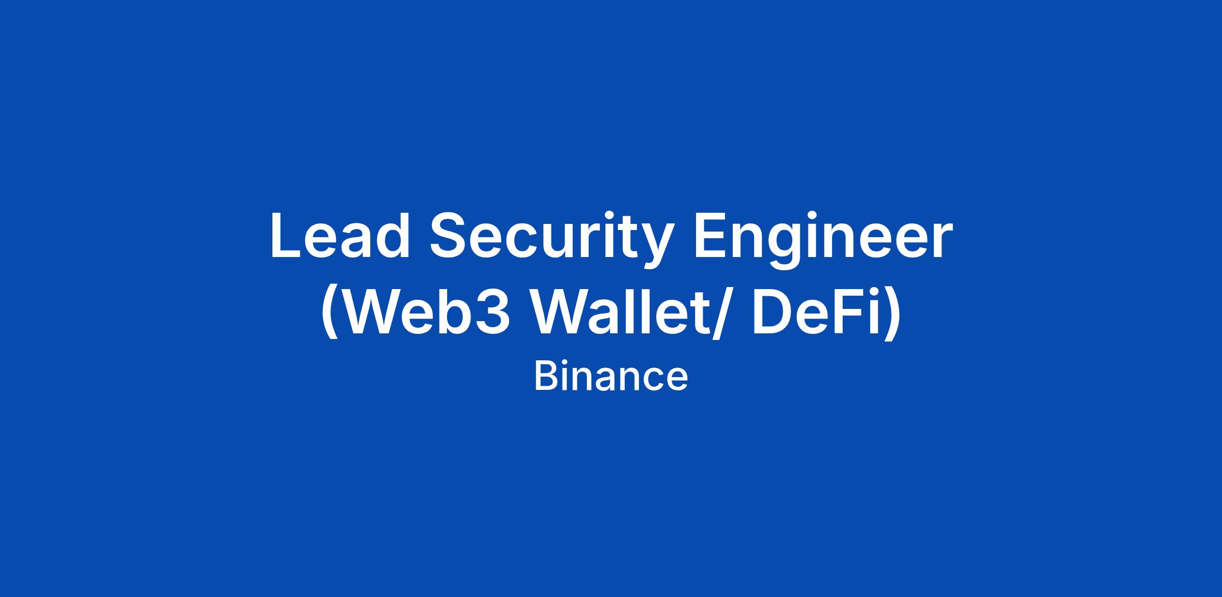 Lead Security Engineer (Web3 Wallet/ DeFi)