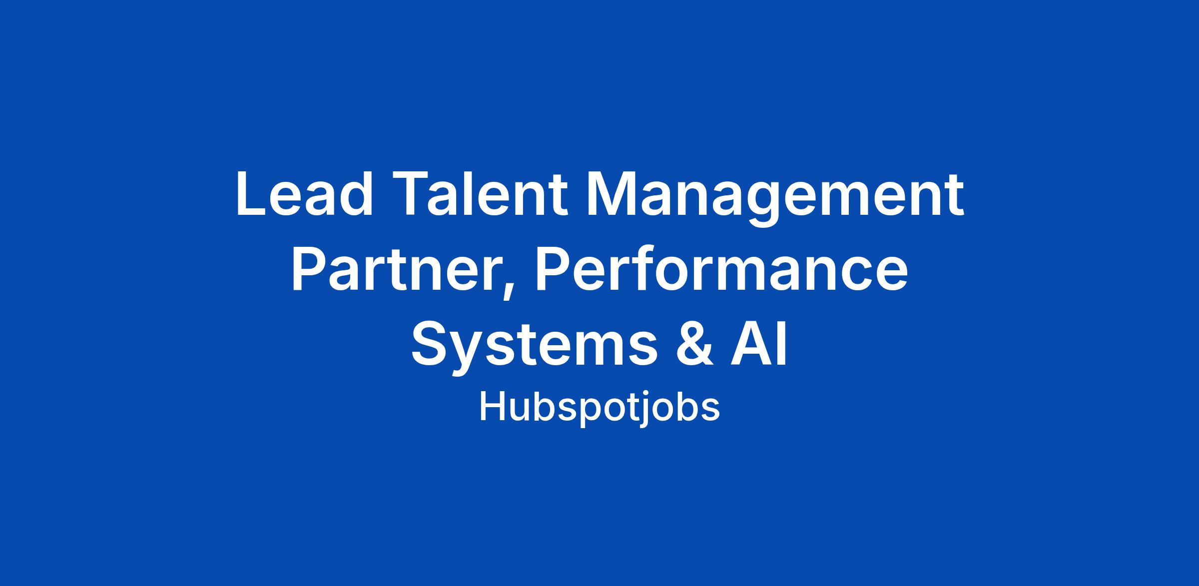 Lead Talent Management Partner, Performance Systems & AI