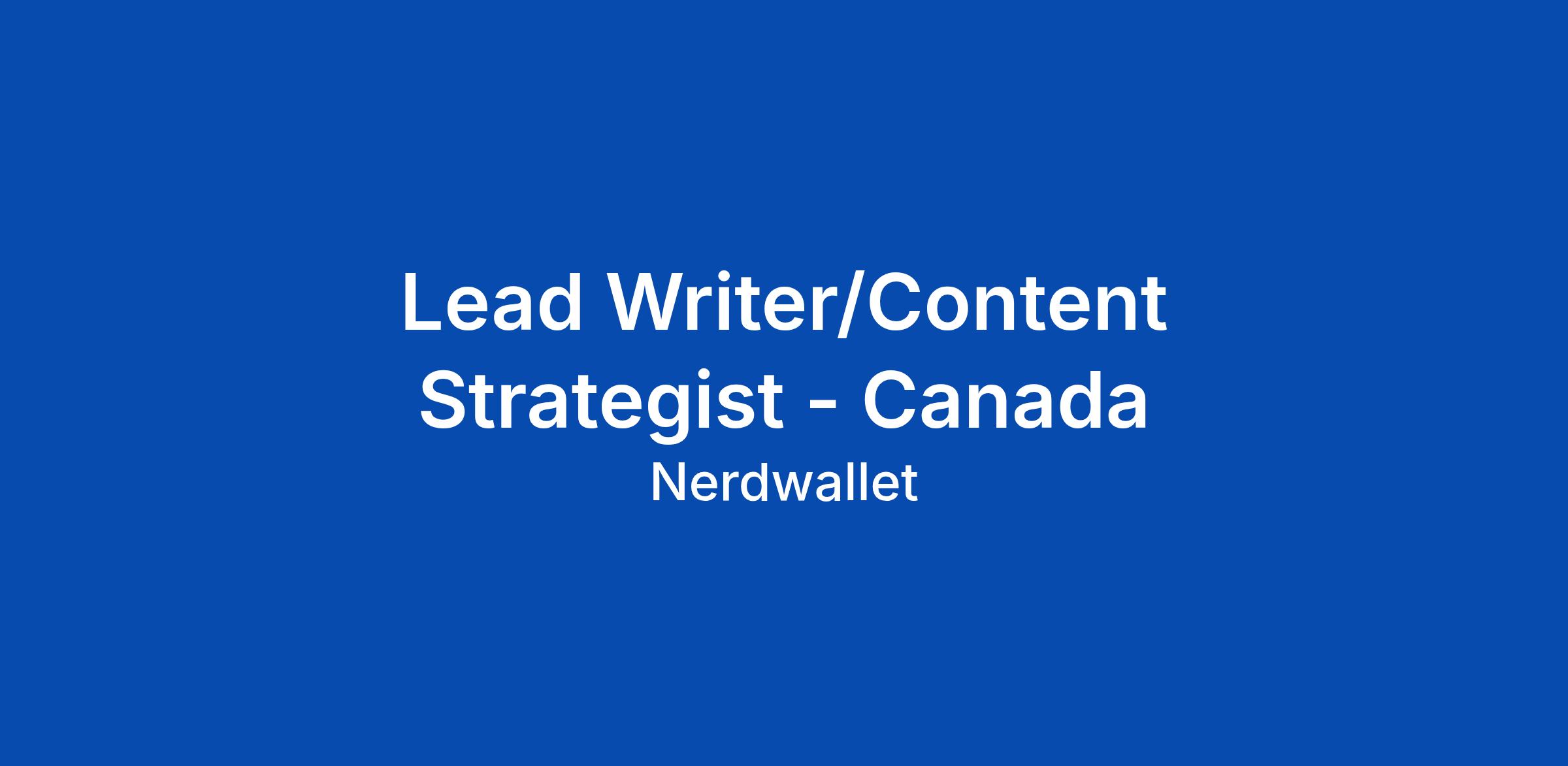 Lead Writer/Content Strategist - Canada