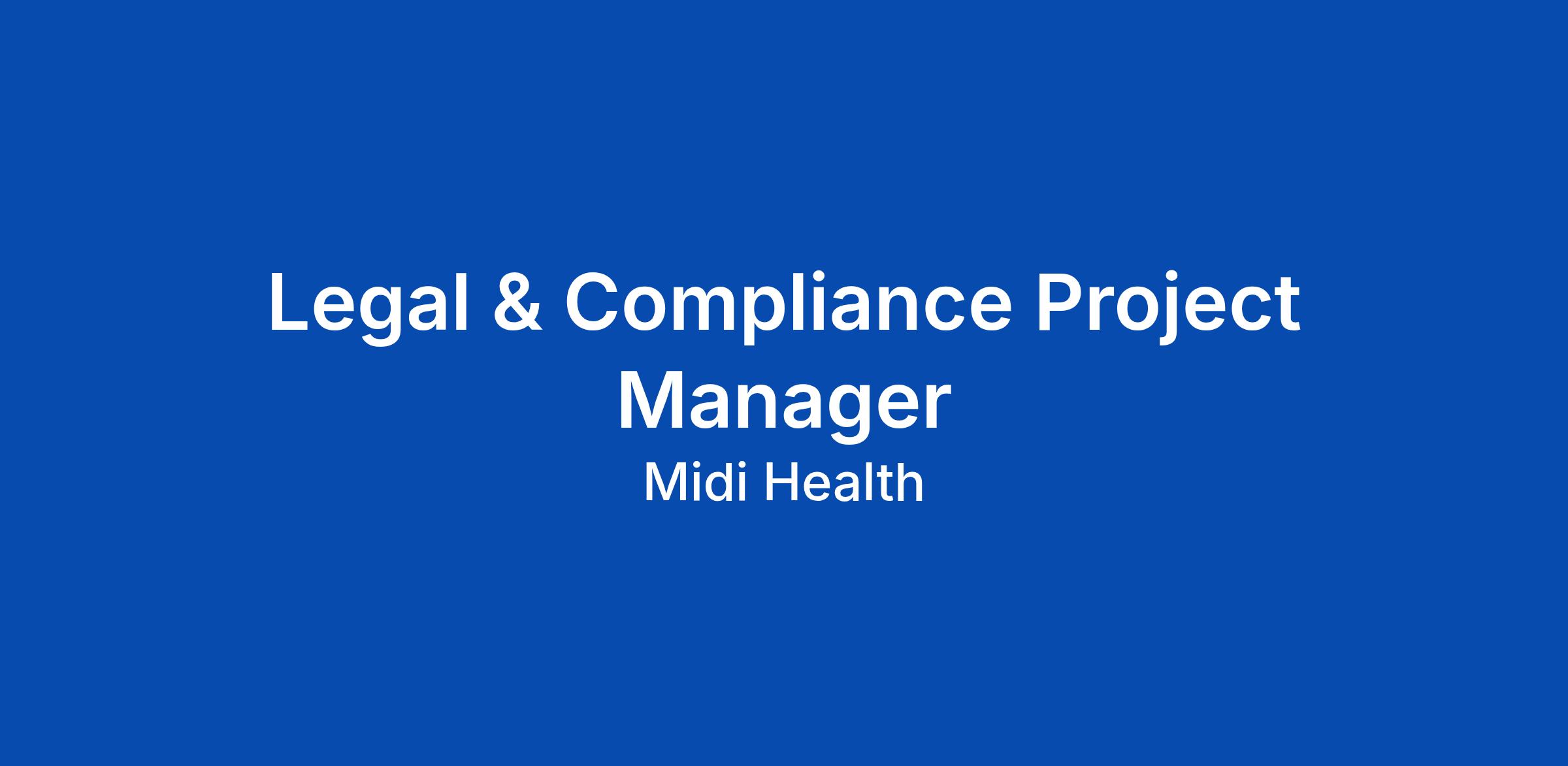 At Midi Health, we're not just building a company; we're reclaiming midlife for women as a new beginning. We're the leading force in midlife women's healthcare, providing expert-designed, clinician-delivered, and insurance-covered care that's changing lives. As a company founded by women, for women, we're dedicated to helping every woman embrace midlife as a powerful new chapter. Join us, and you'll be part of a team that embodies our core values every single day. LEGAL & COMPLIANCE PROJECT MANAGER @ MIDI HEALTH Reports to: Senior Vice President, Compliance About Midi Health: Defining the Future of Midlife Care Midi Health is the fastest-growing virtual clinic dedicated exclusively to women in midlife. For too long, perimenopause, menopause, and hormonal health have been underserved and overlooked. We are changing that by delivering expert-led, insurance-covered care that meets women exactly where they are. Why Our Work Matters - Scale with Impact: Having cared for hundreds of thousands of patients across the U.S., we are moving at a velocity rarely seen in healthcare. - The Model: Weβve bridged the gap between clinical excellence and cutting-edge technology, ensuring that world-cl... Click Apply to read the full job description.