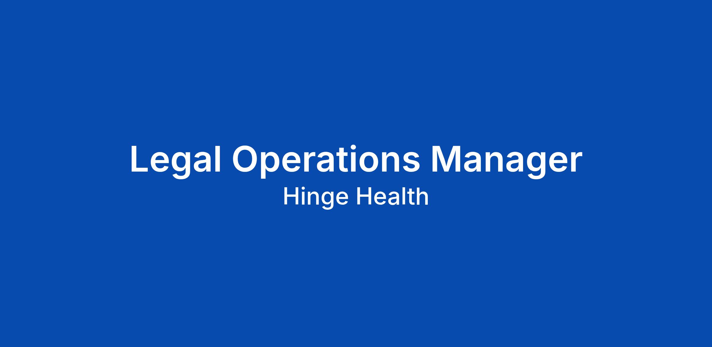 THE OPPORTUNITY Join the team transforming how musculoskeletal (MSK) care is delivered by building the operational engine that powers our Legal and Compliance functions. We are seeking a motivated Legal Operations Manager to drive efficiency and scalability during a critical phase of Hinge Healthβs growth. In this role, you will work cross-functionally to manage strategic projects, optimize legal technologies, and create the processes that allow our best-in-class Legal team to deliver high-impact services to the entire organization. WHAT YOU'LL ACCOMPLISH - In your first 3 months: You will audit our current legal workflows and build strong relationships with key stakeholders across Product, Commercial, and Employment teams. You will take ownership of immediate operational needs, creating processes and templates to organize legal advice and document business processes. - In your first 6 months: You will drive efficiency by building and improving legal self-service resources and knowledge management tools. You will establish key performance indicators (KPIs) to measure team performance and launch dashboards that provide leadership with real-time insights into legal spend and operatio