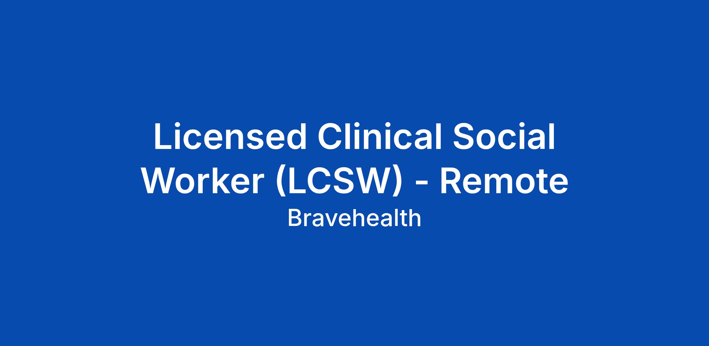 Licensed Clinical Social Worker (LCSW) - Remote