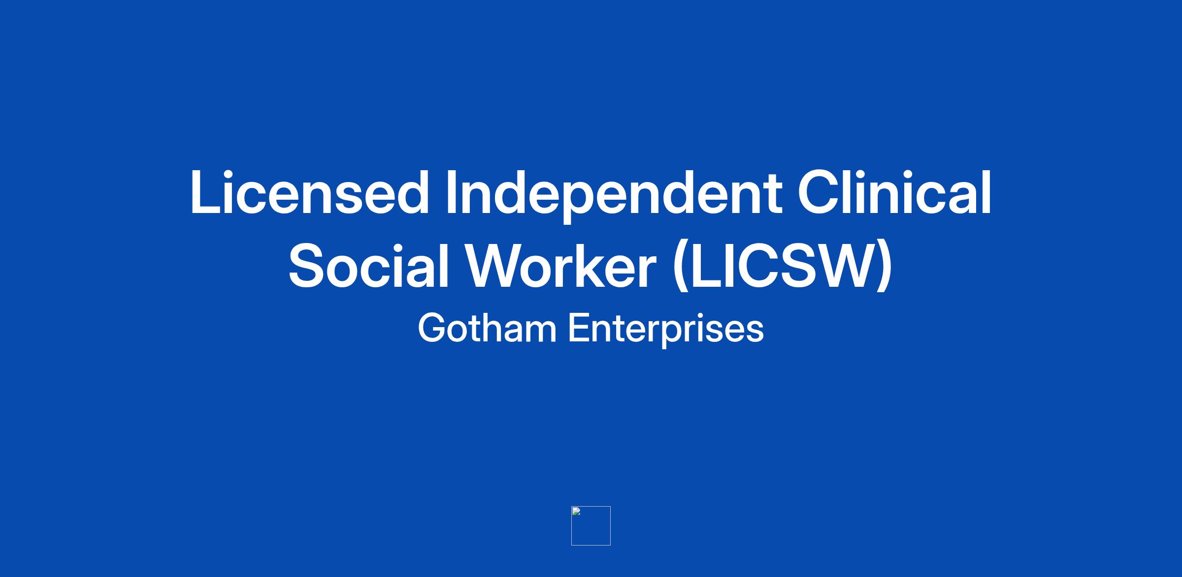 - Current licensure as a Licensed Independent Clinical Social Worker (LICSW) in the state