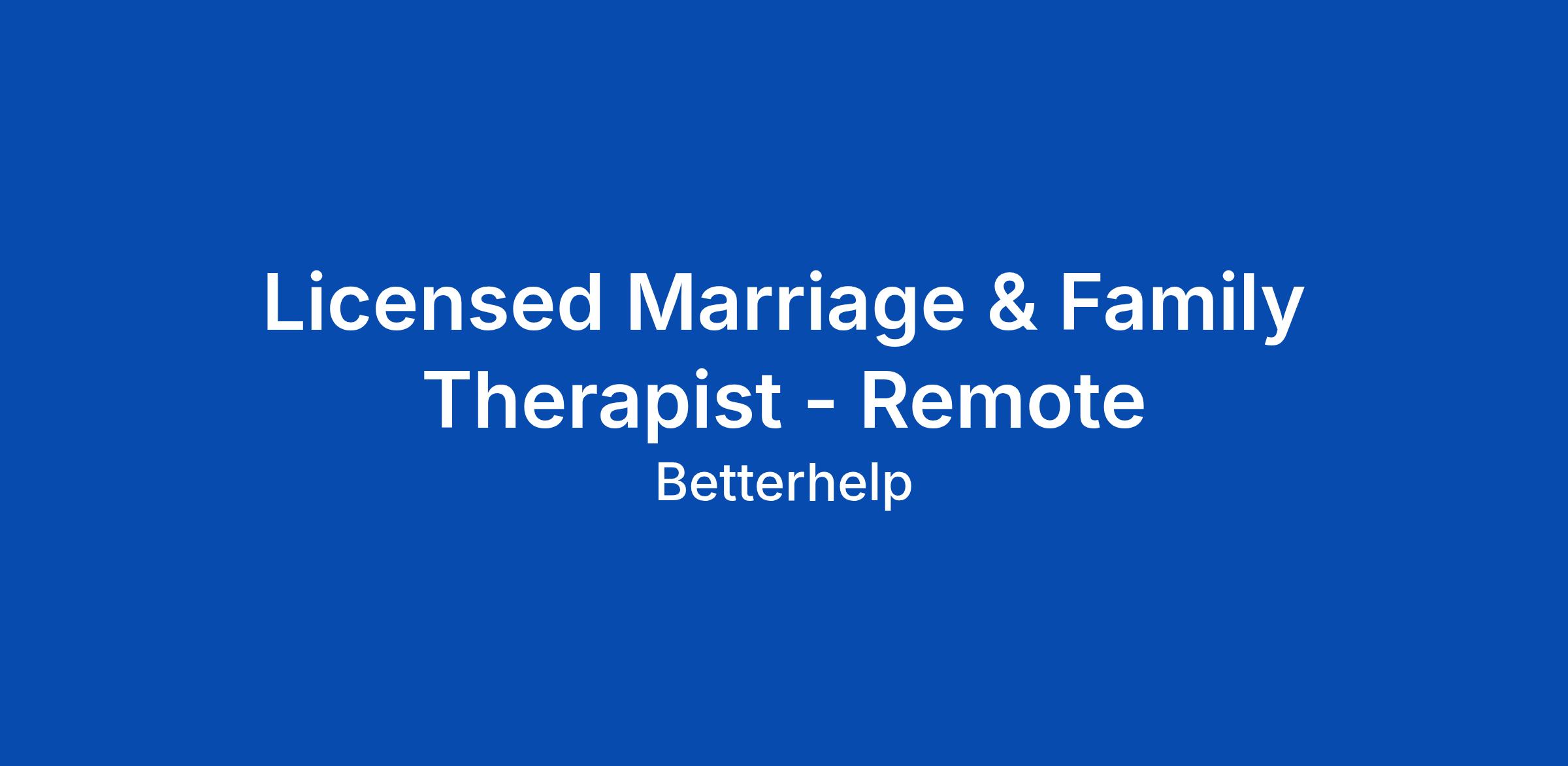 Licensed Marriage & Family Therapist - Remote