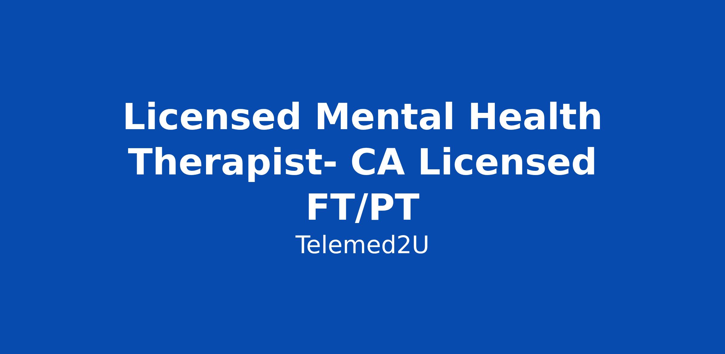Licensed Mental Health Therapist- CA Licensed FT/PT