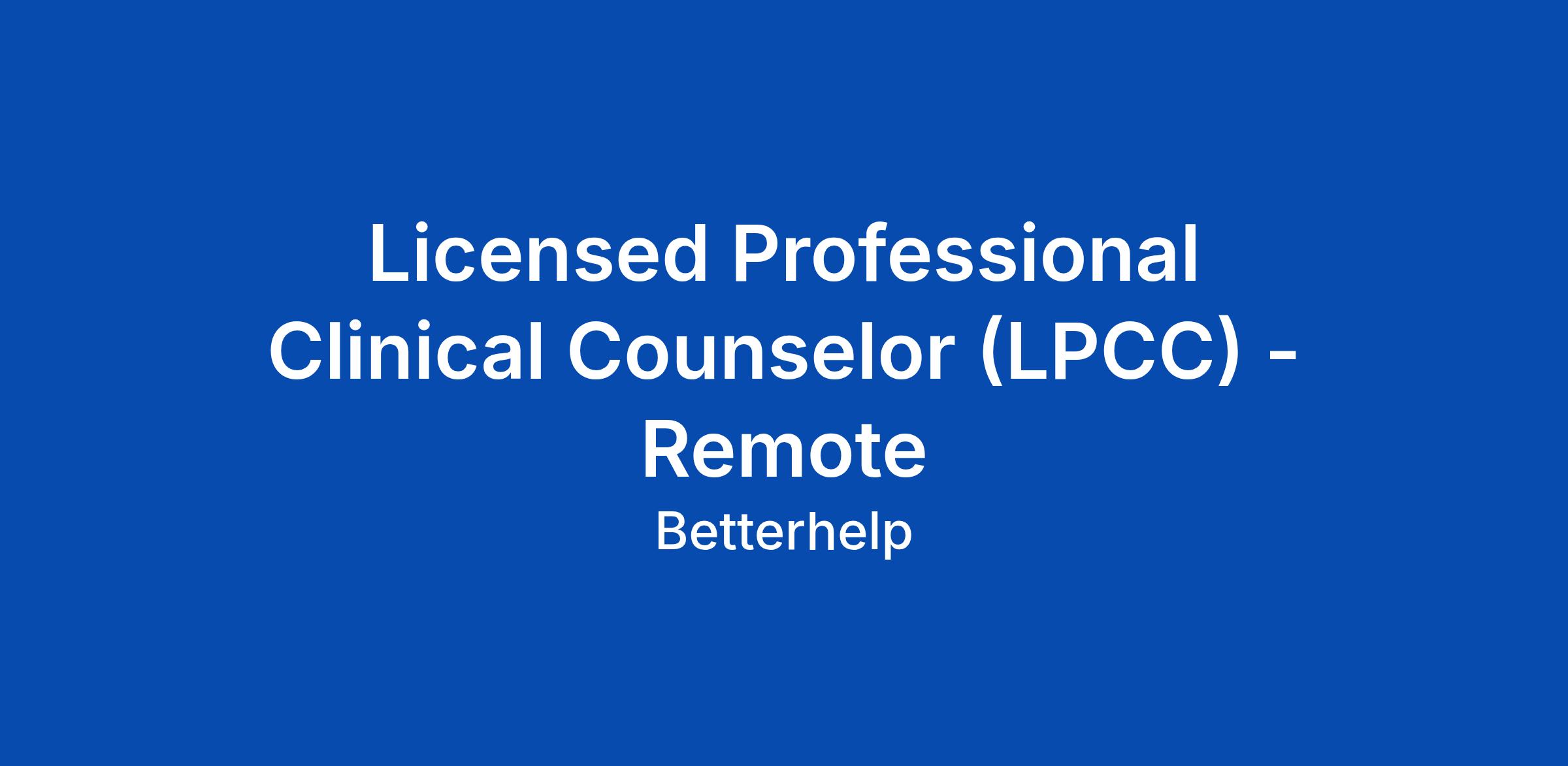 Licensed Professional Clinical Counselor (LPCC) - Remote