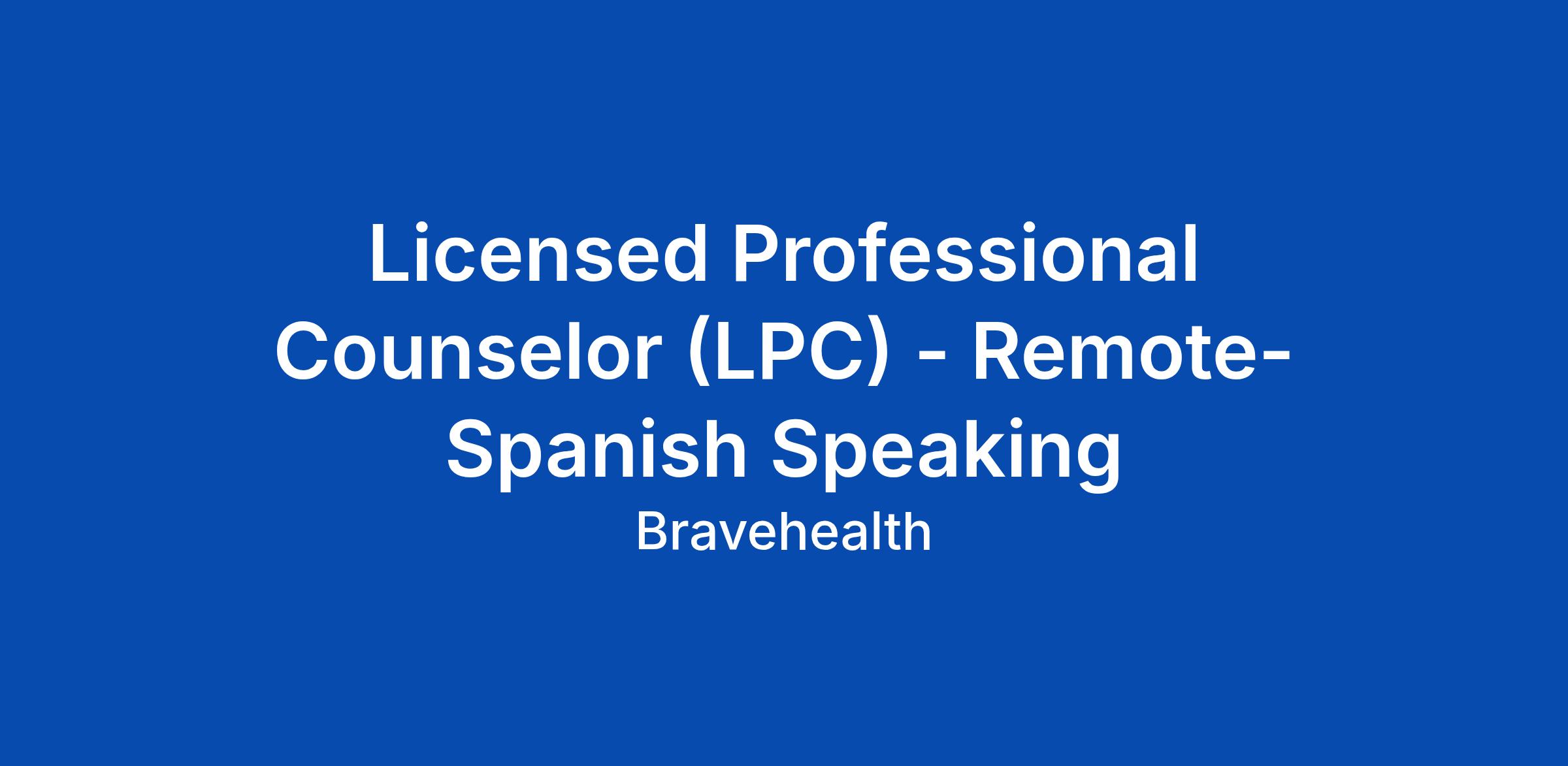 Licensed Professional Counselor (LPC) - Remote- Spanish Speaking