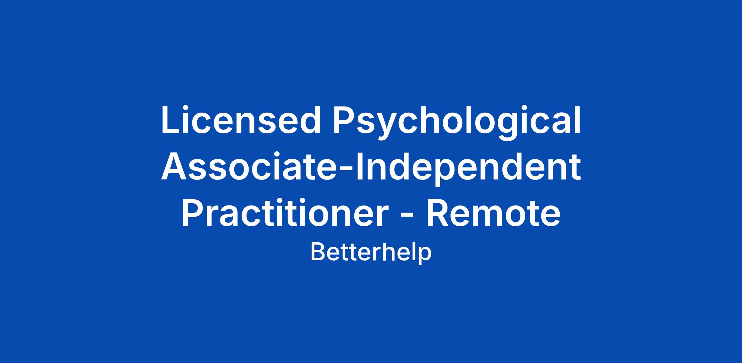 Licensed Psychological Associate-Independent Practitioner - Remote